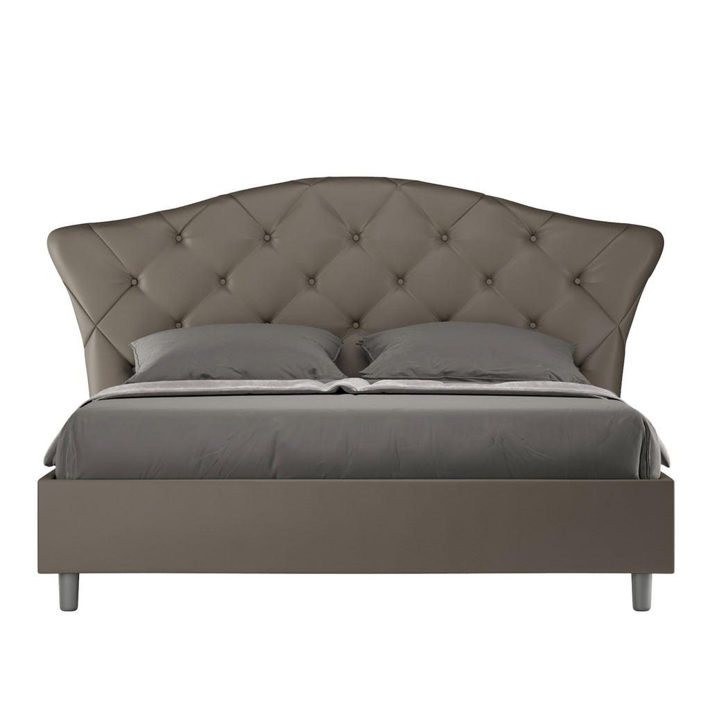 Letto matrimoniale in varie misure Langre con testata e giroletto imbottiti, rivestimento in similpelle, particolarmente versatile e facilmente abbinabile a qualsiasi stile di arredamento. Il letto matrimoniale Langre è caratterizzato da uno stile classico rivisitato in chiave moderna completamente rivestito in similpelle. La presenza del materiale in similpelle, oltre a donare alla stanza un'atmosfera accogliente ed invitante, offre la comodità di una pulizia facile e veloce, grazie all'utilizzo di un semplice panno in microfibra. Letto fornito con rete contenitore con alzata doppia. Rivestimento letto non sfoderabile.