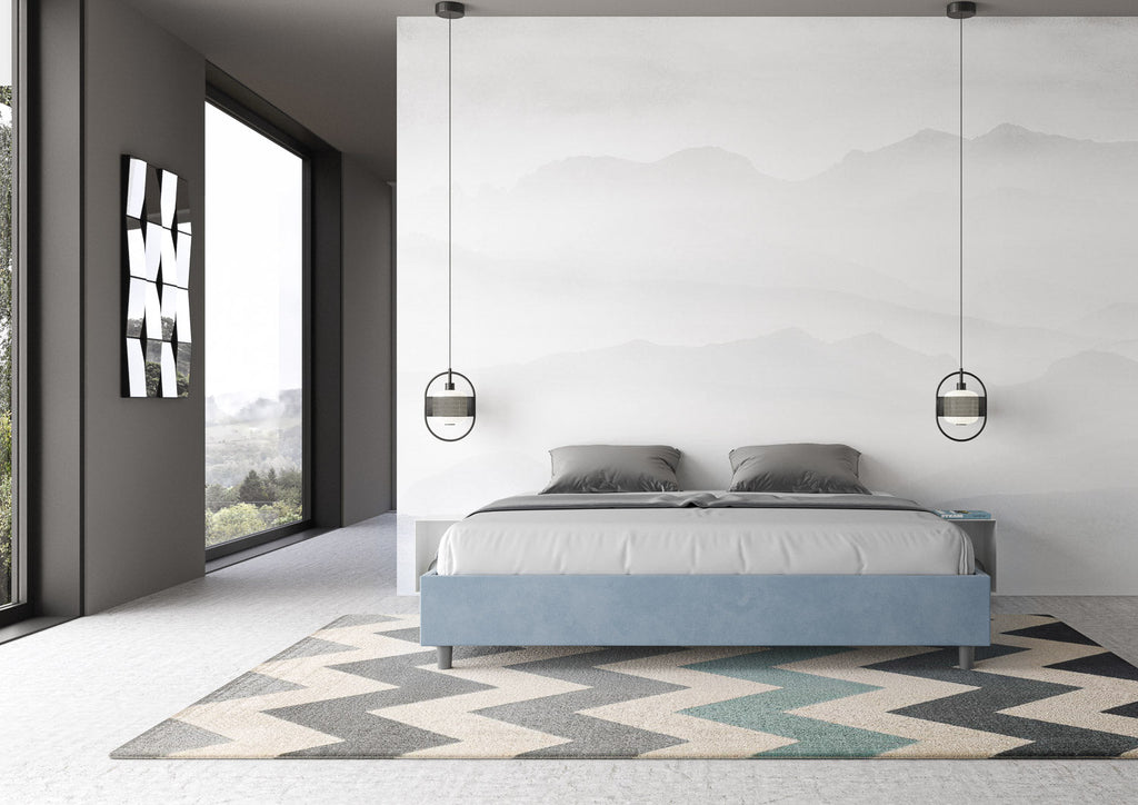 Lit sommier modèle Azelia avec cadre de lit rembourré. Le lit Azelia se présente comme un lit extrêmement simple et linéaire, où la facilité de placement dans la pièce règne certainement en maître. La particularité est sans aucun doute donnée par l'absence de tête de lit qui vous permettra de la placer n'importe où, sous une fenêtre, dans un grenier ou près d'un mur particulièrement impressionnant sans que cela vous empêche de l'apprécier pleinement.