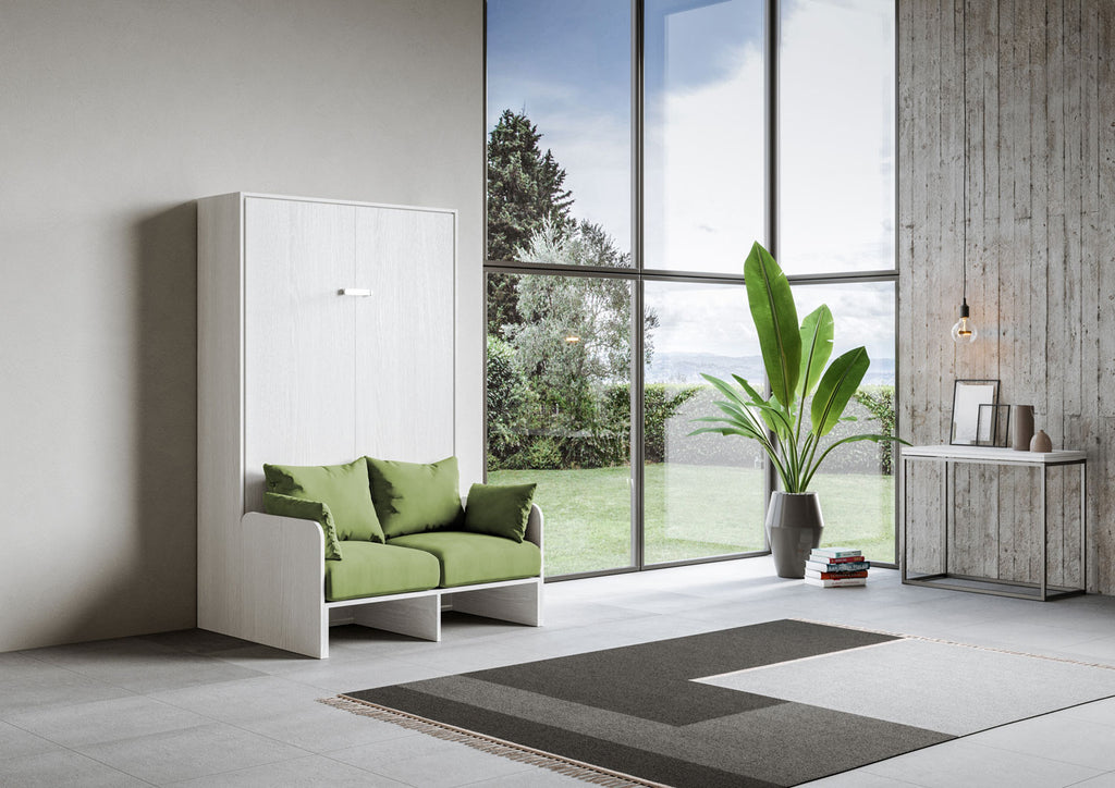 Letto Matrimoniale Francese A Scomparsa 140 Kentaro Con Divano Bianco Frassino e Verde