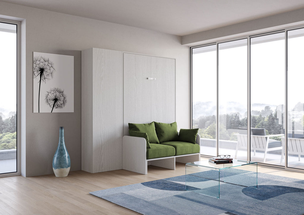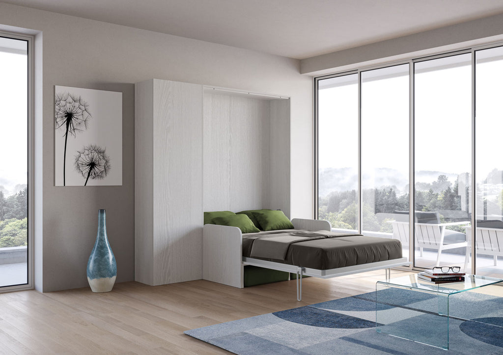Letto Matrimoniale Francese A Scomparsa 140 Kentaro Con Divano E Colonna Bianco Frassino e Verde