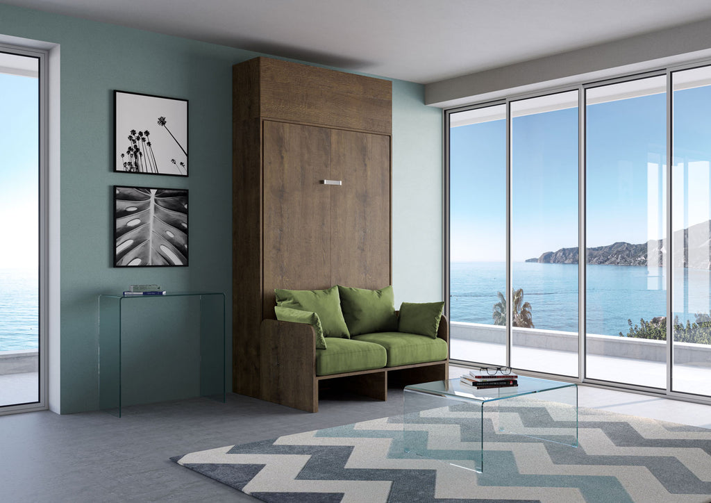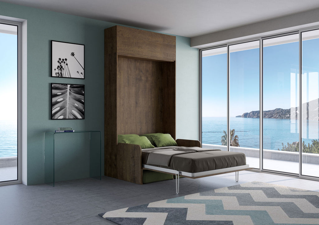 Letto Matrimoniale Francese A Scomparsa 140 Kentaro Con Divano E Pensile Noce e Verde