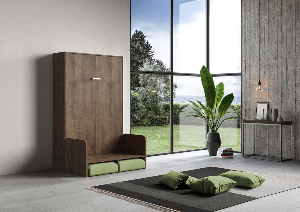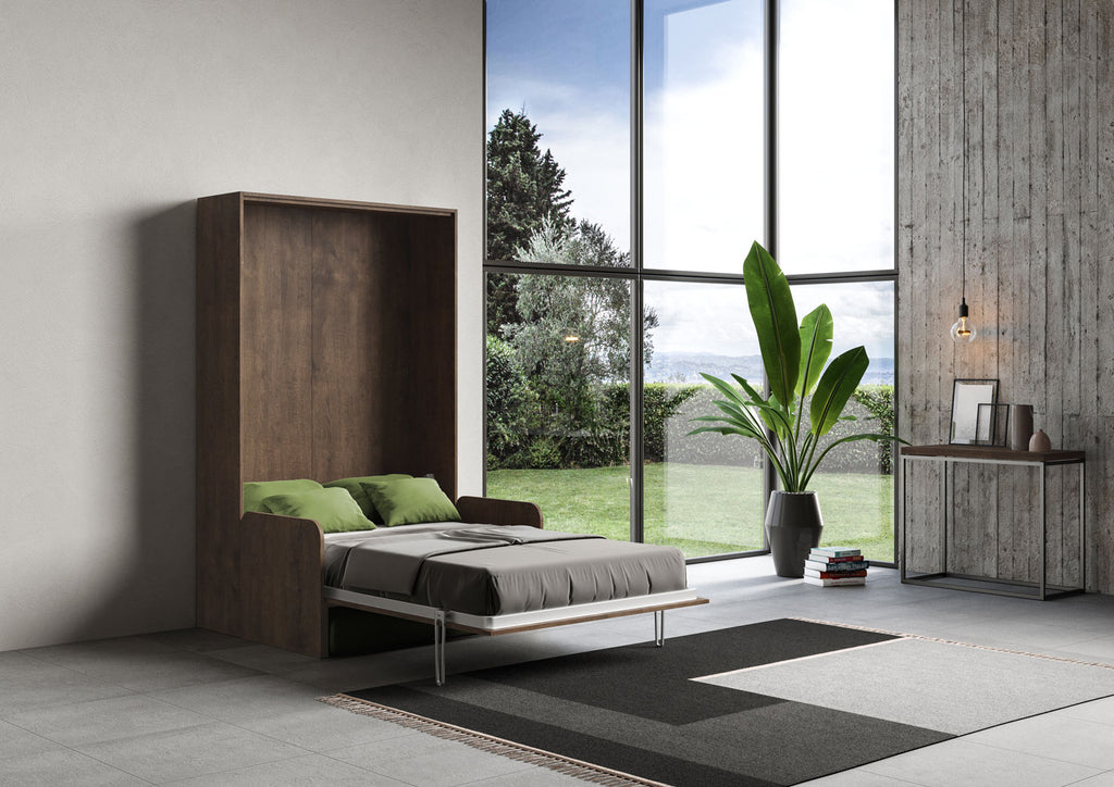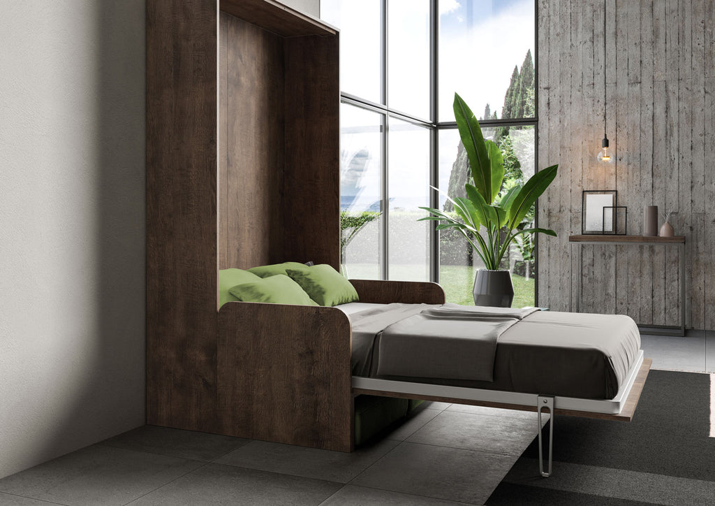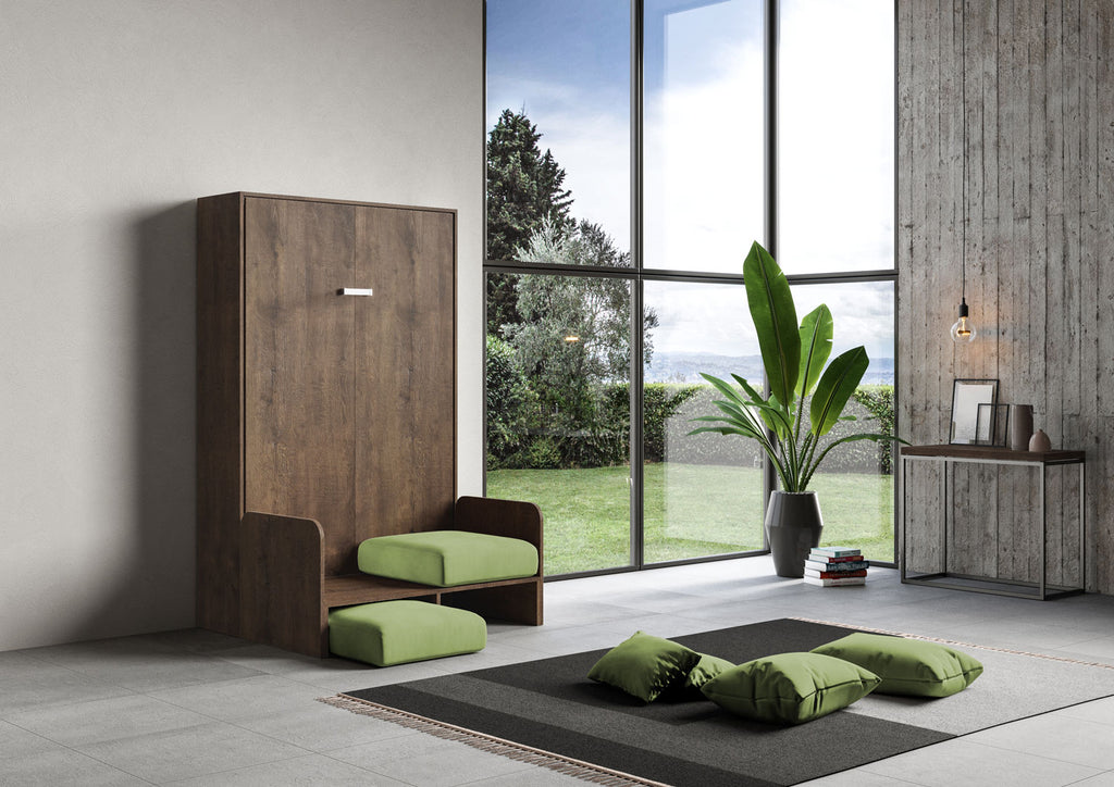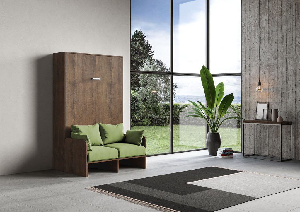 Letto Matrimoniale Francese A Scomparsa 140 Kentaro Con Divano Noce e Verde