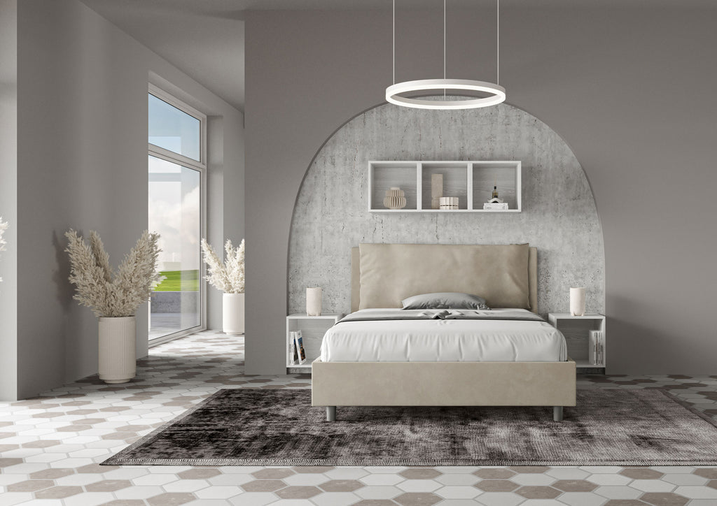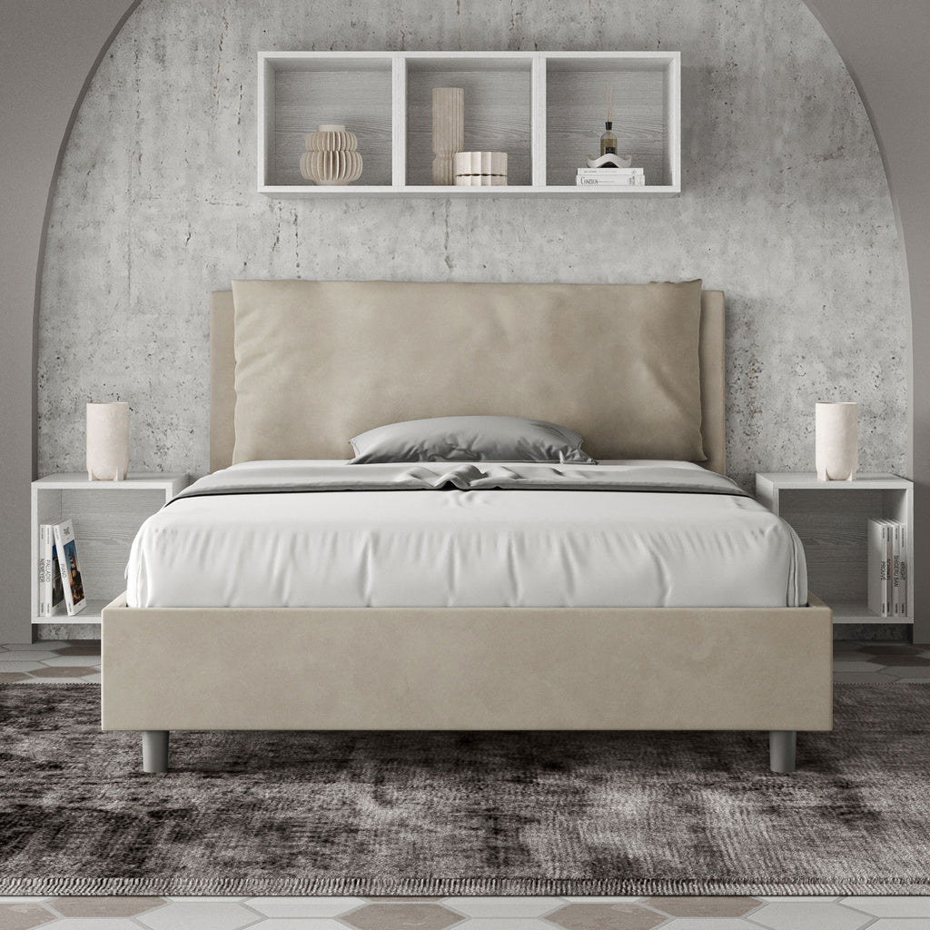 Letto Matrimoniale Francese Imbottito in Microfibra Antea Large Sabbia Varie Misure
