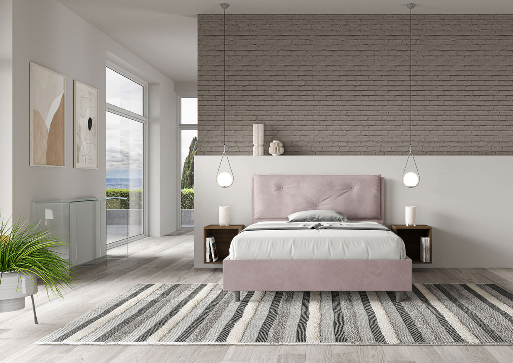 Letto alla francese in varie misure Appia Large con testata e giroletto imbottiti, rivestimento in microfibra, particolarmente versatile e facilmente abbinabile a qualsiasi stile di arredamento. Il letto alla francese Appia Large è caratterizzato da uno stile elegante e raffinato grazie all'ampia cuscinatura presente sulla testata, è interamente rivestito in microfibra. Un letto che darà un tocco di eleganza alla tua zona notte, senza passare inosservato, grazie alle caratteristiche distintive del suo rivestimento in microfibra. Rivestimento testiera e giroletto sfoderabile, rivestimento cuscini non sfoderabile.