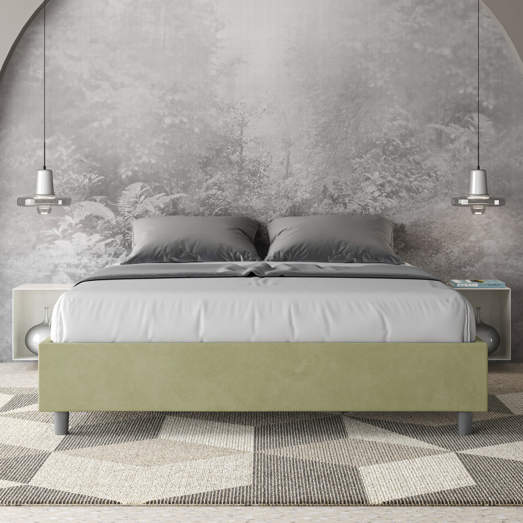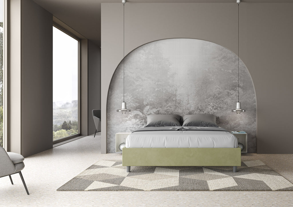 Letto Matrimoniale Giroletto con Alzata Comoda Imbottito in Microfibra Azelia Tè Verde Varie Misure