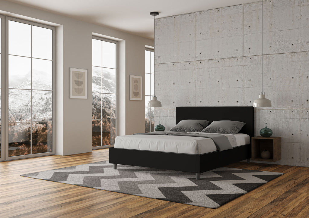 Letto Matrimoniale Giroletto con Alzata Comoda Imbottito in Similpelle Adele Nero Varie Misure