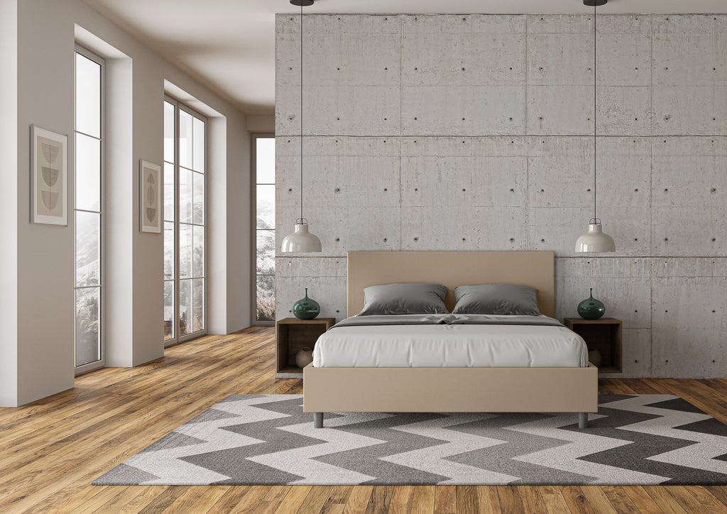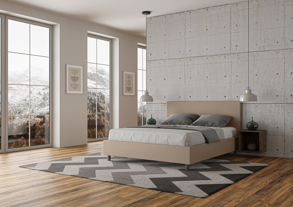 Letto Matrimoniale Giroletto con Alzata Comoda Imbottito in Similpelle Adele Tortora Varie Misure