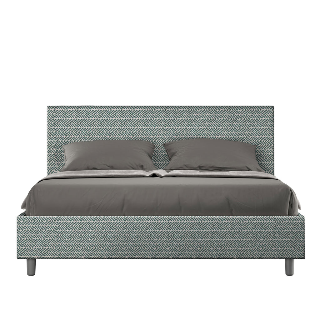 Letto Matrimoniale Giroletto con Alzata Comoda Imbottito in Tessuto Aragona Adele Azzurro Varie Misure