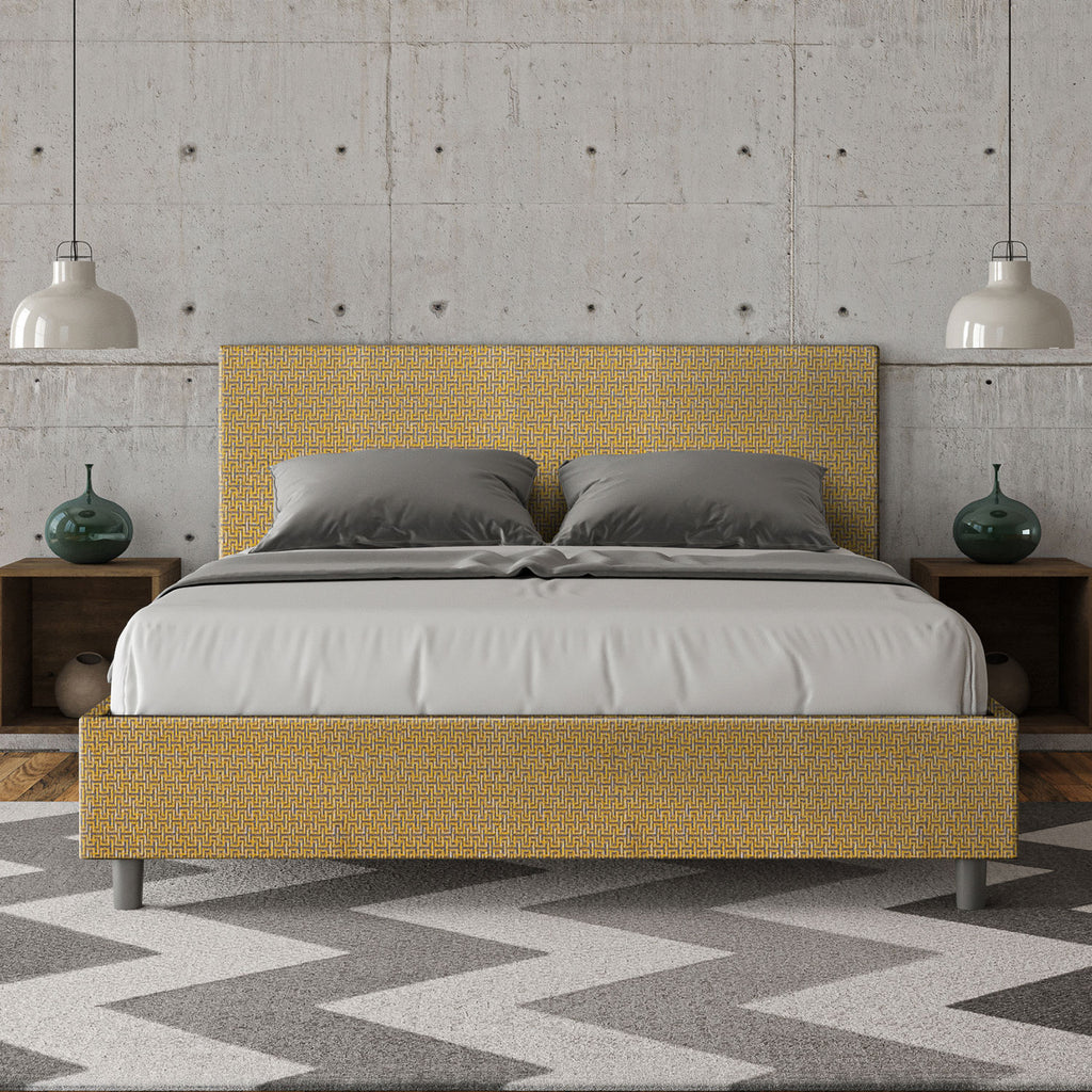 Letto Matrimoniale Giroletto con Alzata Comoda Imbottito in Tessuto Labirinto Adele Giallo Varie Misure