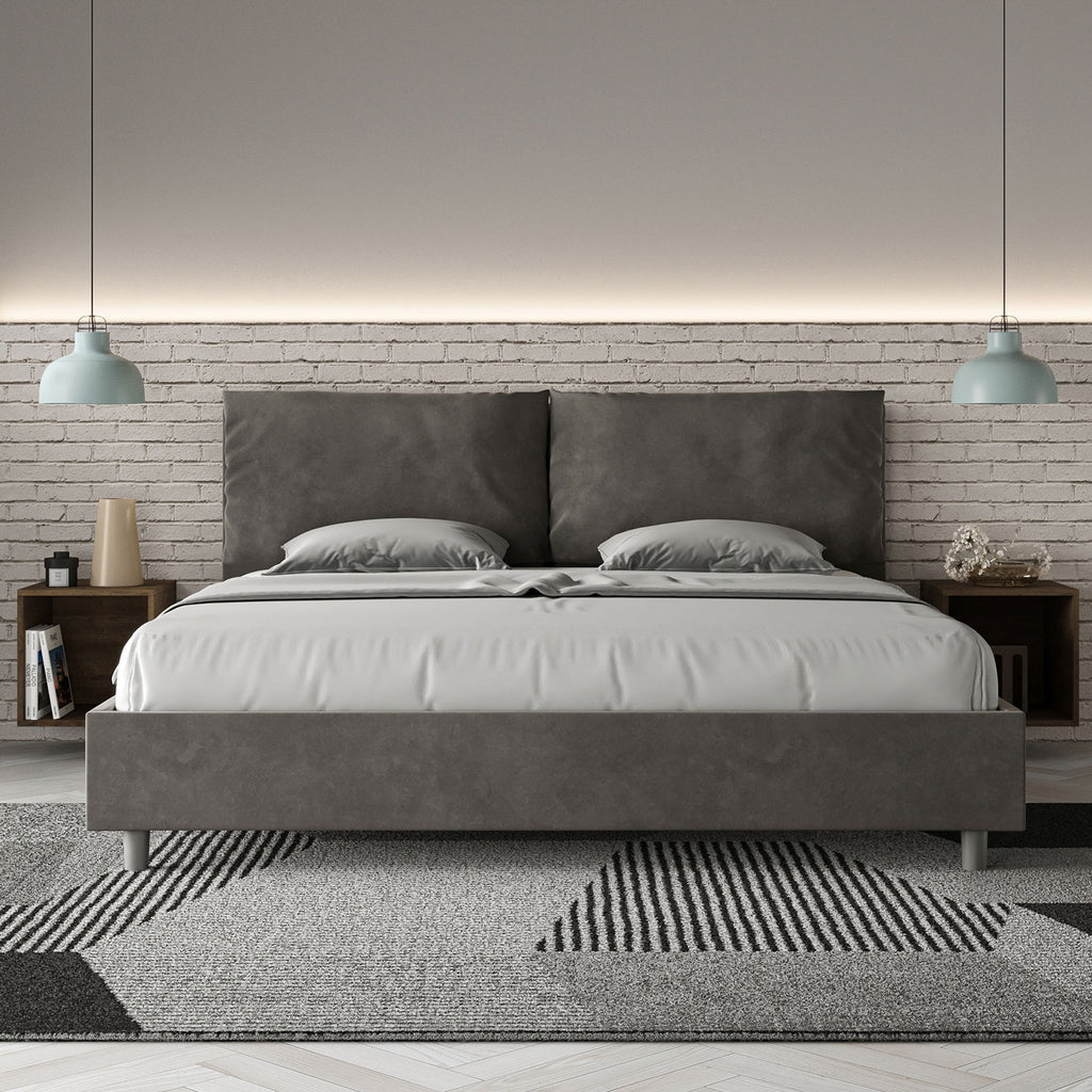 Letto Matrimoniale Imbottito in Microfibra Antea Large Grigio Varie Misure