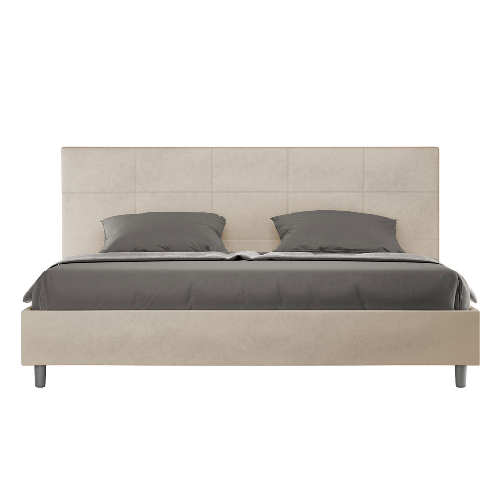 Letto Matrimoniale Imbottito in Microfibra Mika Sabbia Varie Misure