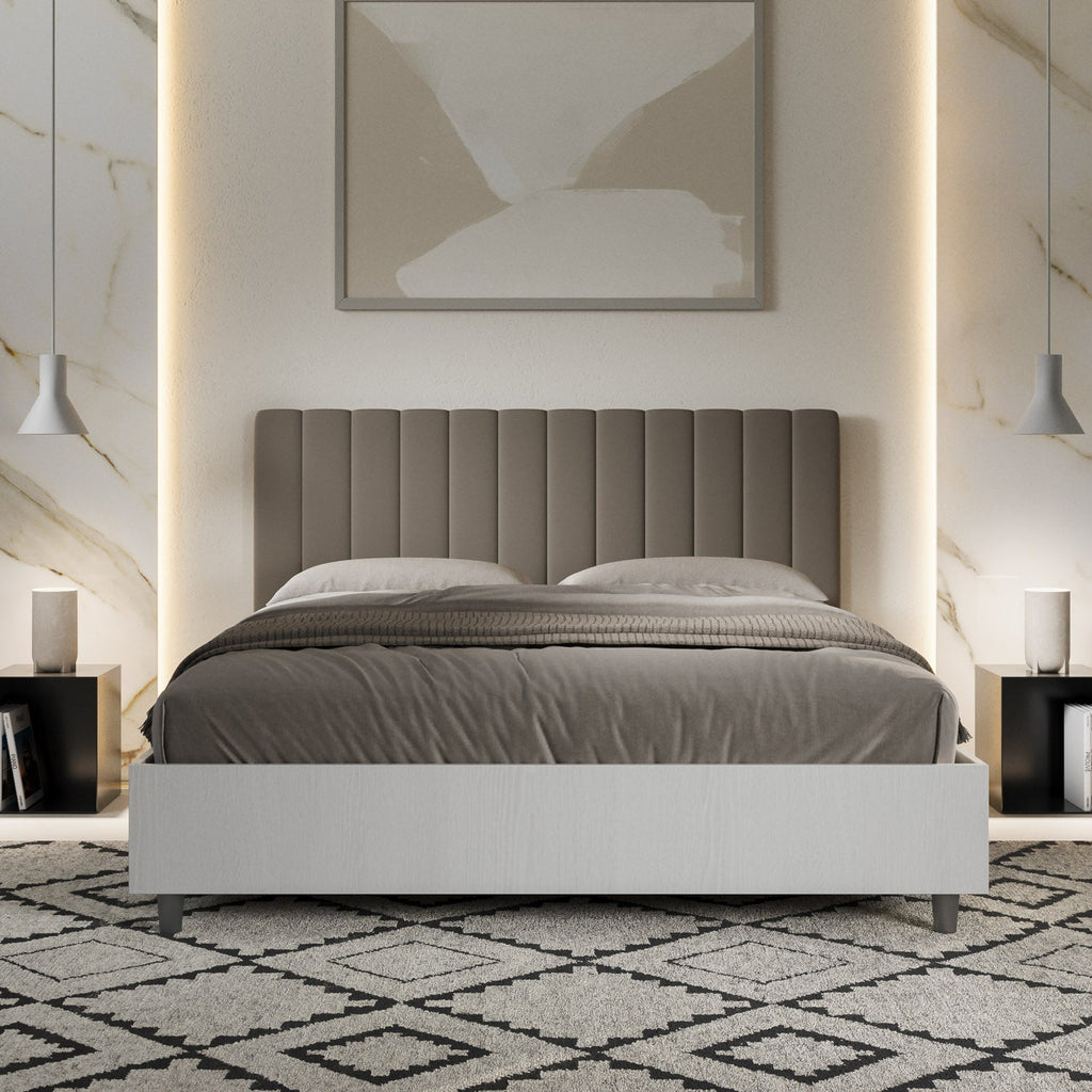 Letto Matrimoniale 160x200 cm con Rete e Contenitore Kaia Cappuccino