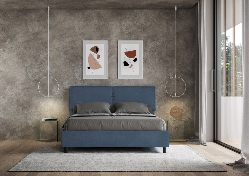 Lit double Mados avec tête de lit et lit rembourrés, revêtement en microfibre, particulièrement polyvalent et facilement combinable avec n'importe quel style d'ameublement. Le lit double Mados se caractérise par un style élégant et raffiné grâce aux grands coussins de la tête de lit, il est entièrement recouvert de microfibre. Un lit qui donnera une touche d'élégance à votre espace nuit, sans passer inaperçu, grâce aux caractéristiques distinctives de son revêtement en microfibre.