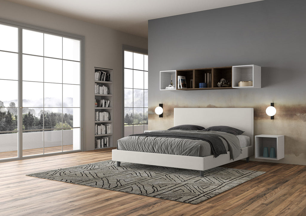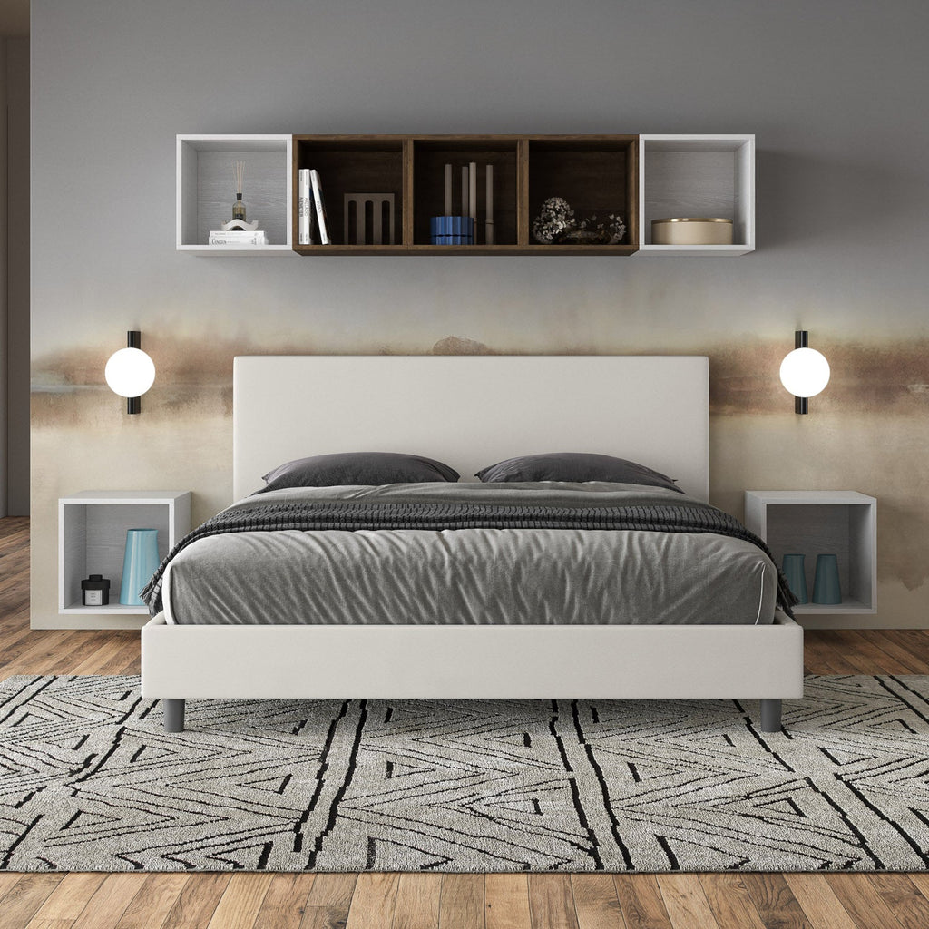 Lit double rembourré modèle Naspy 100% fabriqué en Italie, pour sommier 160x190cm. avec hauteur 4/5cm. Lit réalisé avec soin artisanal et matériaux de haute qualité. Son design élégant et ses lignes simples s'adaptent parfaitement à n'importe quel environnement et style d'ameublement. Le simili cuir du revêtement rend le nettoyage du matériau extrêmement simple. Essuyez simplement avec un chiffon en microfibre légèrement humide pour éliminer toute saleté ou poussière, conservant ainsi son aspect impeccable au fil des années. Couverture non amovible. Épaisseur du cadre de lit : 4 cm. Hauteur du cadre de lit : 19 cm. Hauteur de la tête de lit depuis le sol : 102 cm. Hauteur du cadre de lit : 12 cm.