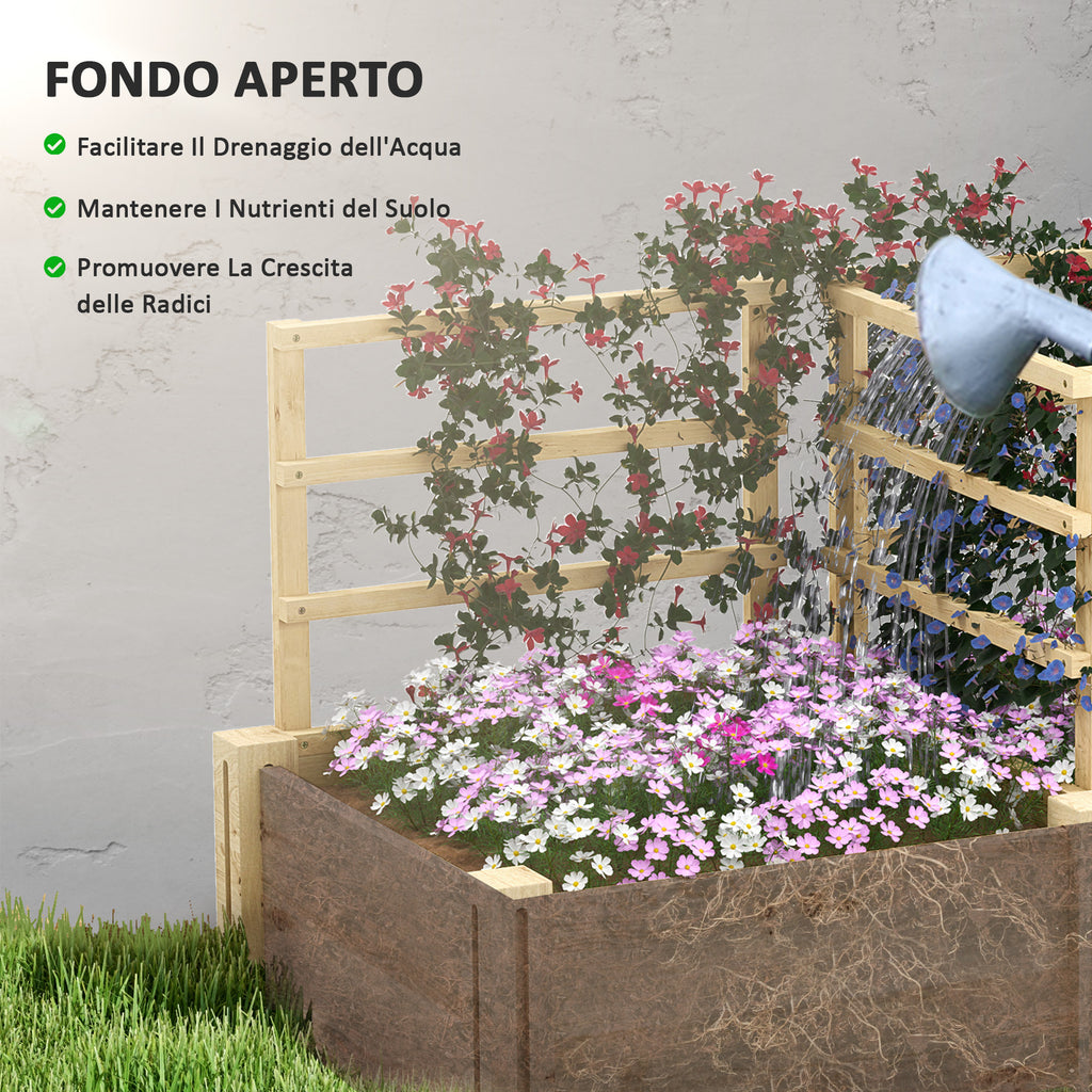 Letto per Orto 119x62,5x64 cm con 3 Tralicci e 2 Fioriere con Fondo Aperto in Legno di Abete