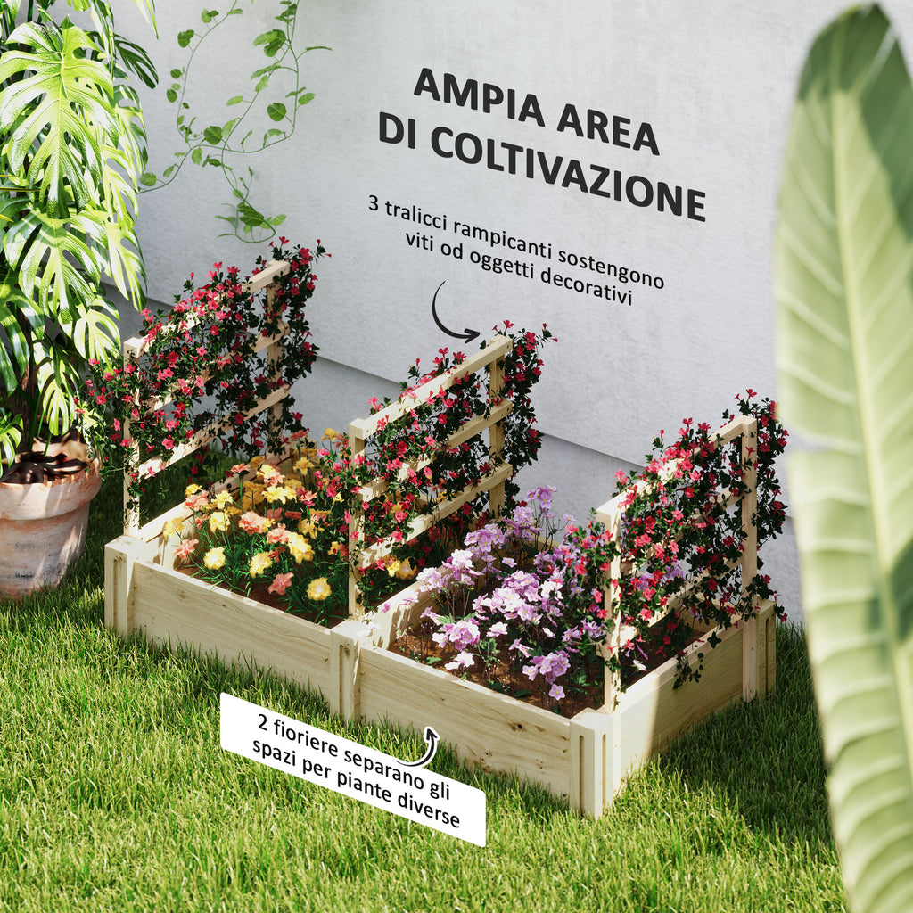 • 2 AREE E 3 TRALICCI PER RAMPICANTI: Questa fioriera in legno è dotata di 2 ampi vasi che offrono spazi distinti per inserire vari tipi di piante, arricchiti da 3 tralicci ideali per aggiungere delle piante rampicanti