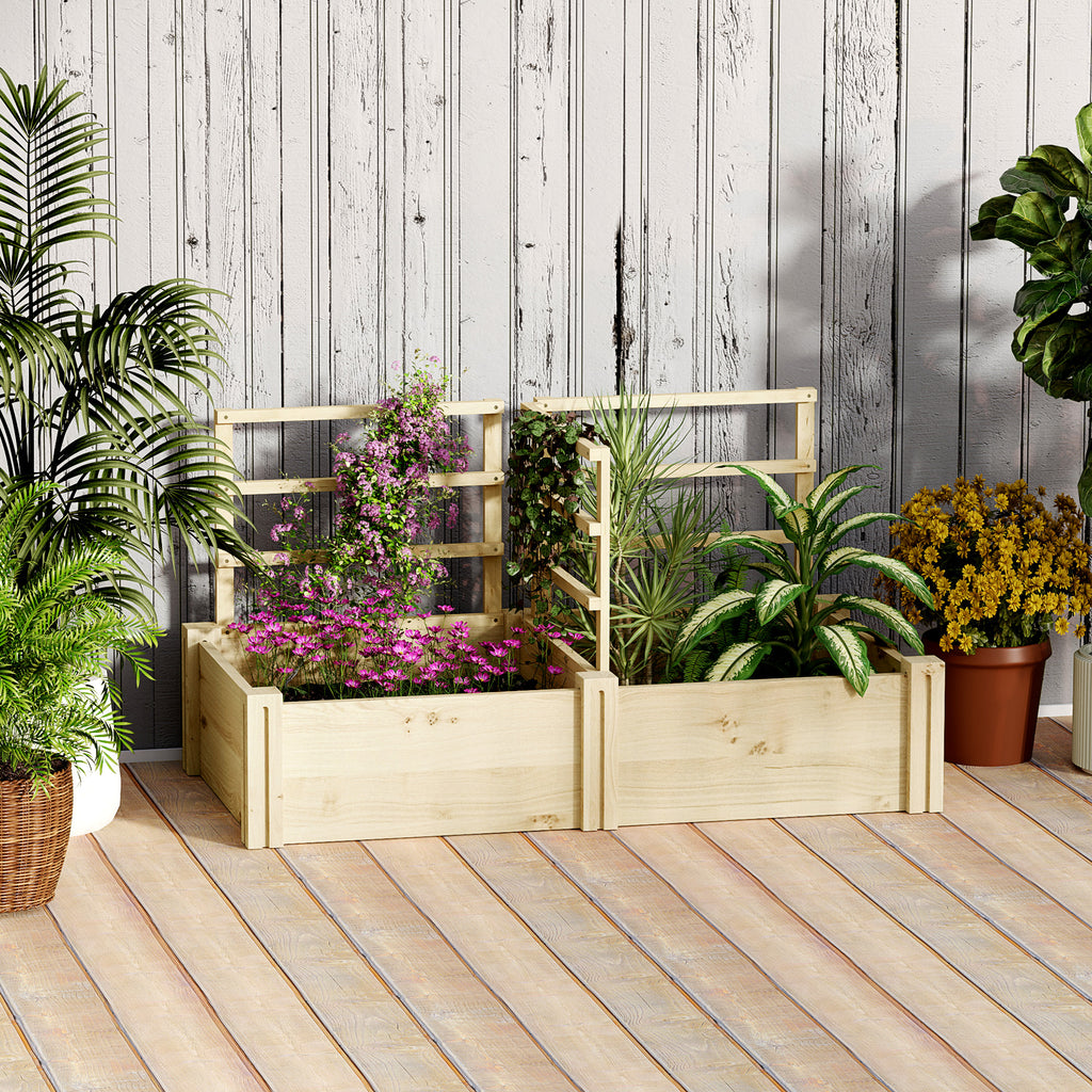 Dona stile e vitalità al tuo giardino con questa fioriera con traliccio in legno di abete! La struttura è dotata di 2 capienti fioriere per ospitare diverse piante e 3 tralicci per inserire le piante rampicanti. Il suo design con base aperta favorisce una crescita in salute delle piante e delle radici, rendendo questo letto per orto un elemento di stile per ogni spazio all'aperto. Due grandi fioriere separano gli spazi per accogliere diverse piante. 3 tralicci per rampicanti supportano viti o oggetti decorativi. I tralicci della fioriera in legno si riposizionano facilmente a seconda delle tue preferenze. La fioriera da esterno può essere dipinta di colori diversi. Il design della base aperta del letto per orto impedisce l'accumulo di acqua, migliorando la salute delle radici. Il legno di abete naturale della fioriera con traliccio garantisce durabilità e utilizzo a lungo termine. Montaggio richiesto.