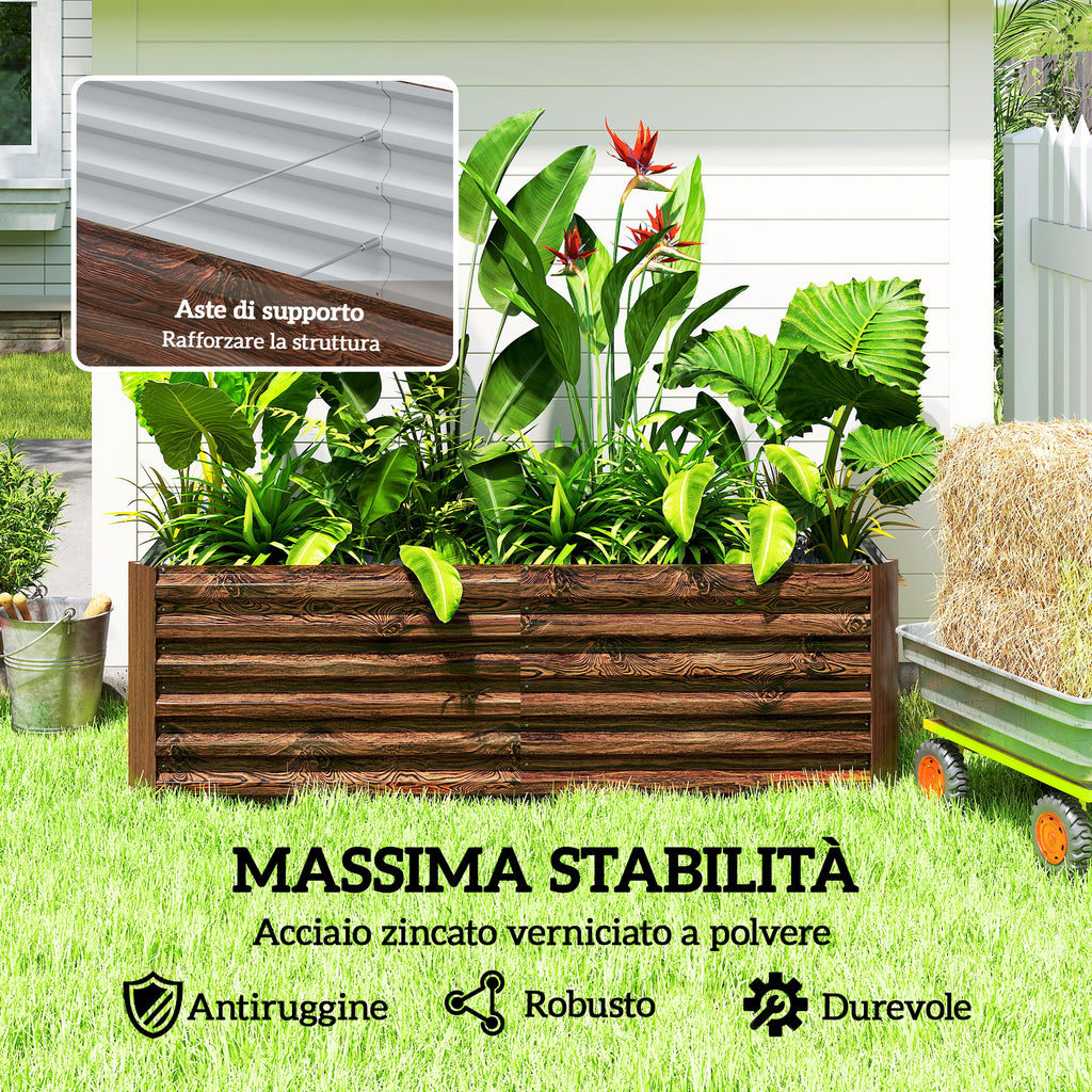 Letto per Orto Rialzato 180x90x57,5 cm con Fondo Aperto e Bordi Arrotondati in Acciaio Zincato Marrone Scuro