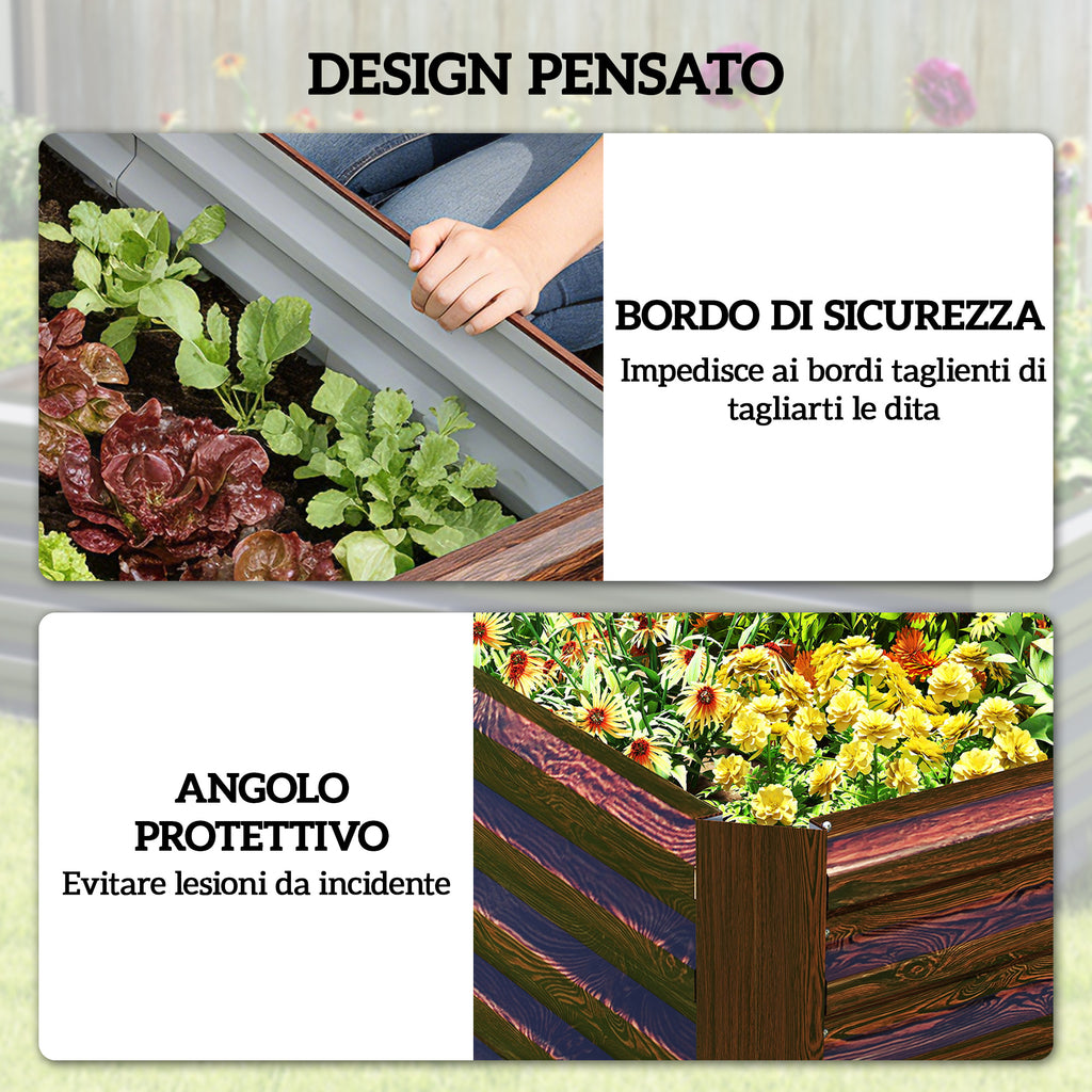 - DESIGN CON BORDI DI SICUREZZA: Bordi piegati, angoli arrotondati e coperture protettive della fioriera rialzata garantiscono un giardinaggio sicuro per tutte le età, riducendo graffi durante semina, annaffiatura o raccolto.