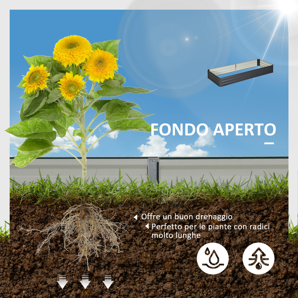 Letto per Orto Rialzato con Fondo Aperto 241x90,5x30 cm Forma Flessibile in Metallo Grigio