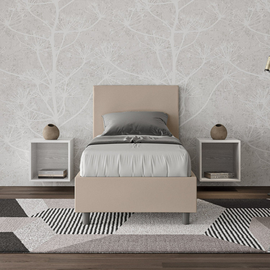 Lit modèle Adele avec cadre de lit rembourré. Le modèle Adele se fait le porte-parole d'un style simple et raffiné. La surface de la tête de lit en simili cuir lisse vous permettra de la placer facilement dans n'importe quel environnement, en lui donnant une touche de classe et une qualité totalement italienne. Même le nettoyage du matériau dont il est entièrement recouvert est extrêmement simple, puisqu'il suffit de l'essuyer avec un chiffon en microfibre pour conserver son charme au fil des années.