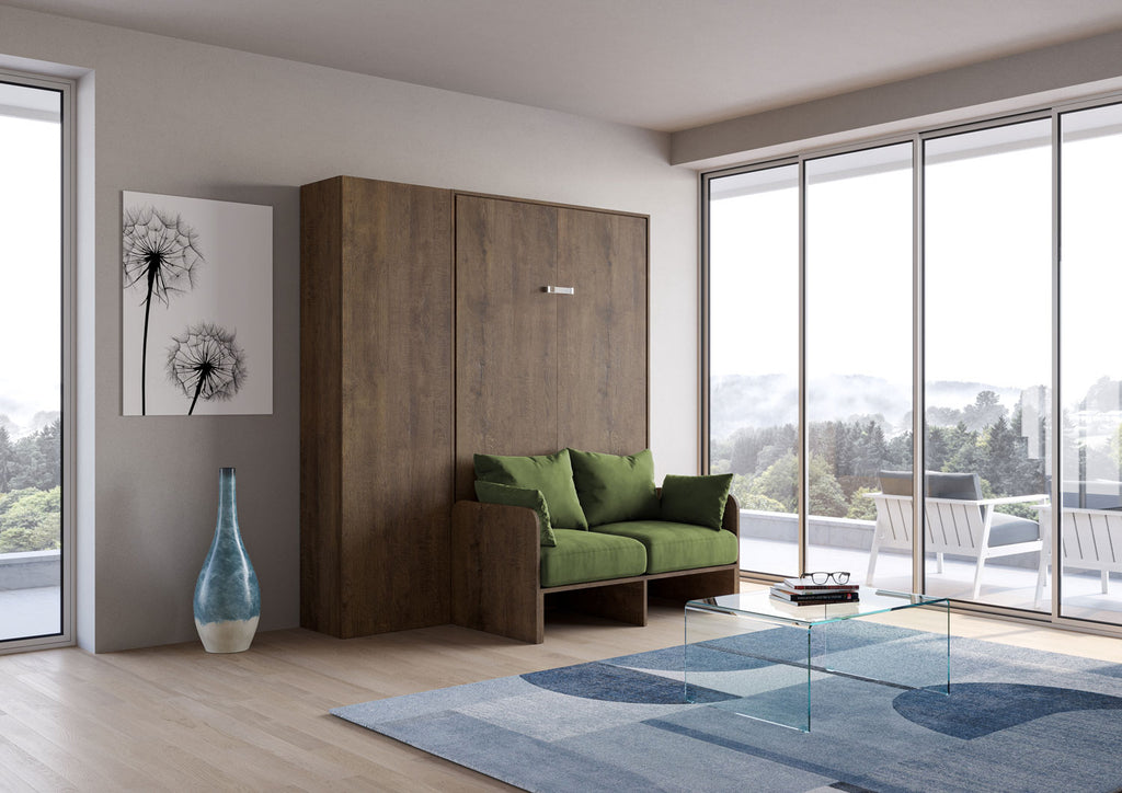 Letto Una Piazza E Mezzo A Scomparsa 120 Kentaro Con Divano E Colonna Noce e Verde
