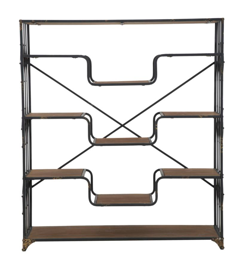 Bibliothèque en métal et bois avec 4 étagères. Des lignes audacieuses qui allient la force du fer à la sobriété du bois. Des éléments qui s'associeront parfaitement à un mobilier d'inspiration industrielle.