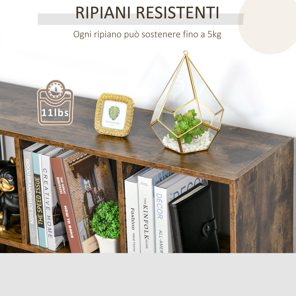 Bibliothèque 3 étagères 8 compartiments 97,5x30x100 cm en MDF Marron Rustique