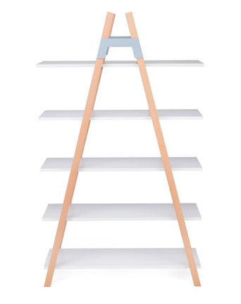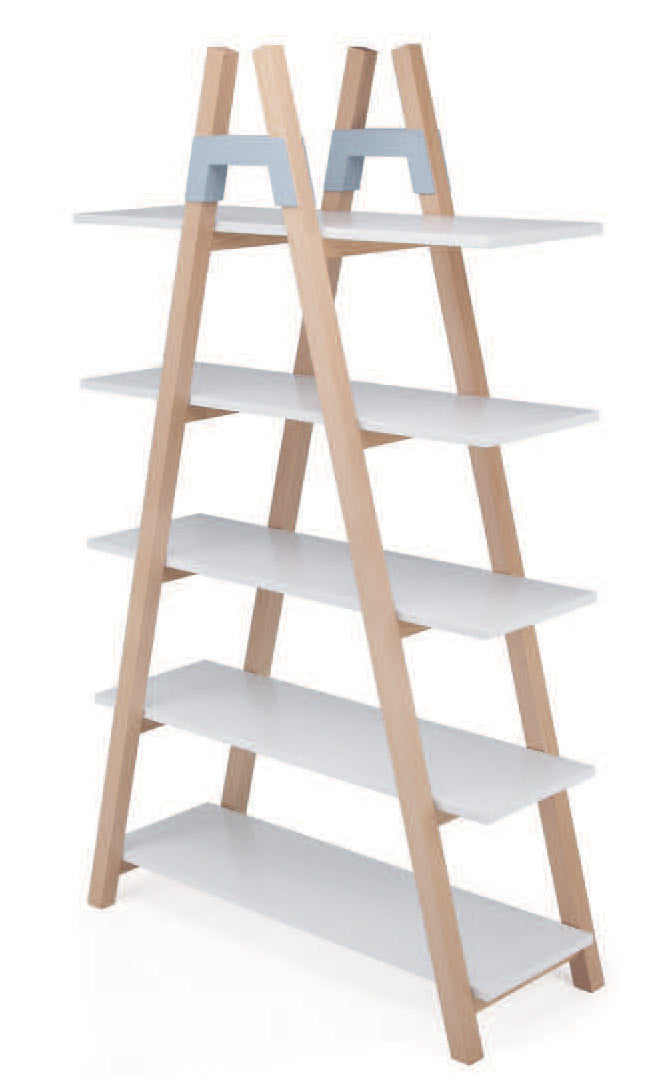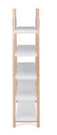 La structure principale est en bois de hêtre naturel massif de section carrée de 4x4 cm. Les joints du haut sont d’un bleu clair délicat. Les étagères sont en MDF laqué blanc, épaisseur 1,5 cm. L'assemblage est rapide et facile. En insérant un support supplémentaire présent dans l'emballage dans la partie inférieure, plusieurs bibliothèques peuvent être reliées, prolongeant ainsi la surface de l'étagère. La bibliothèque peut être entièrement désinfectée à l'aide d'une éponge ou d'un chiffon en microfibre avec des produits nettoyants et/ou désinfectants.