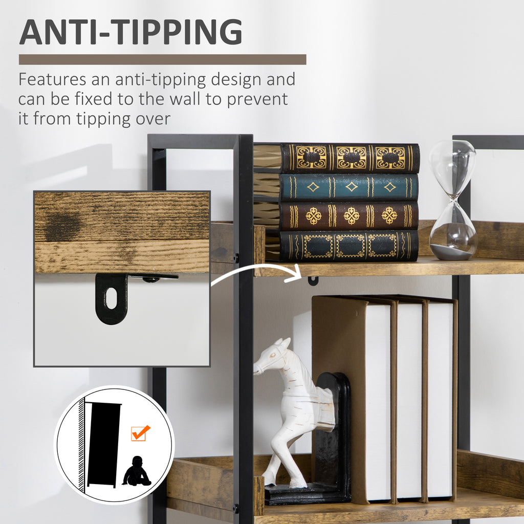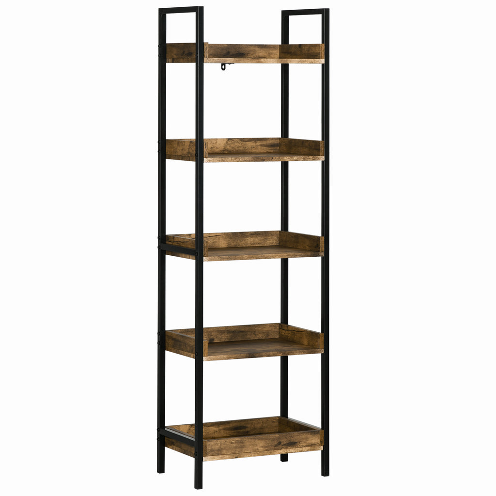 Bibliothèque 5 étagères 48x30x155 cm en bois et métal marron rustique