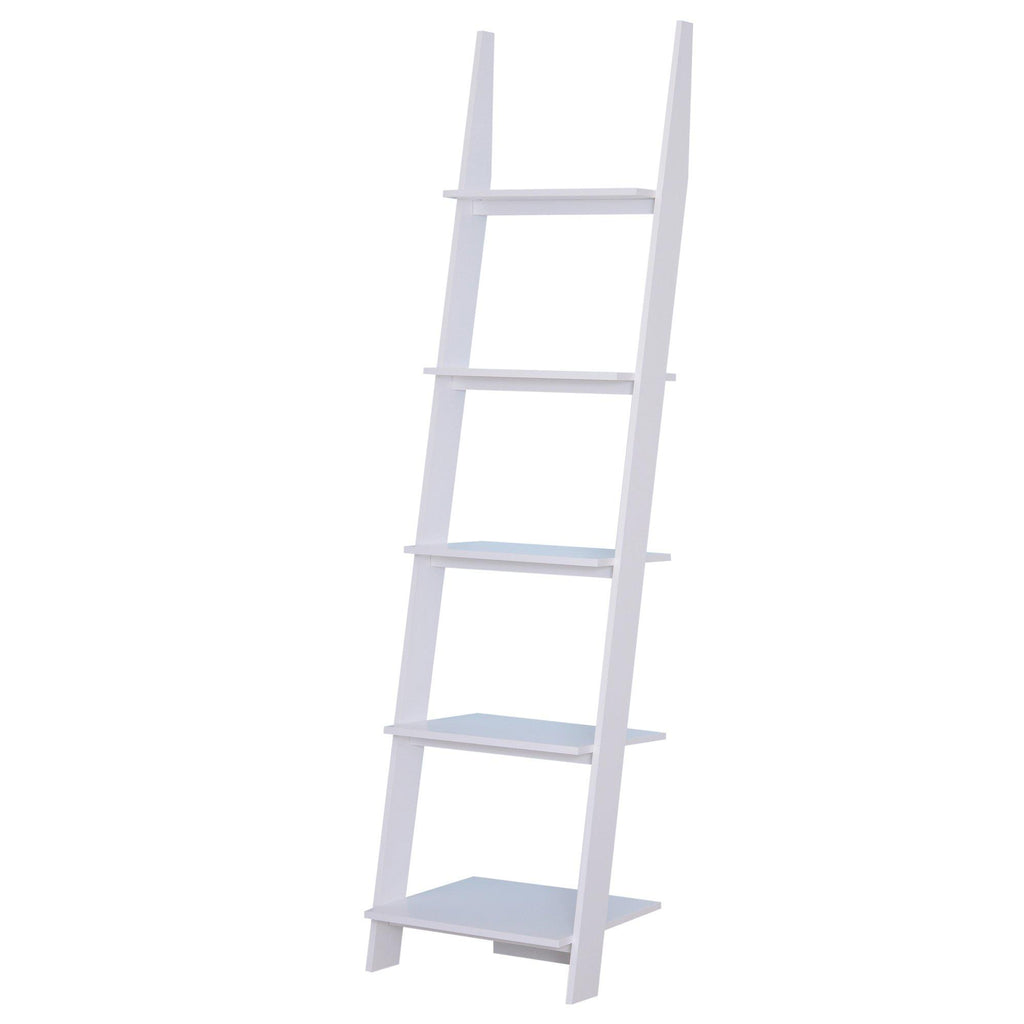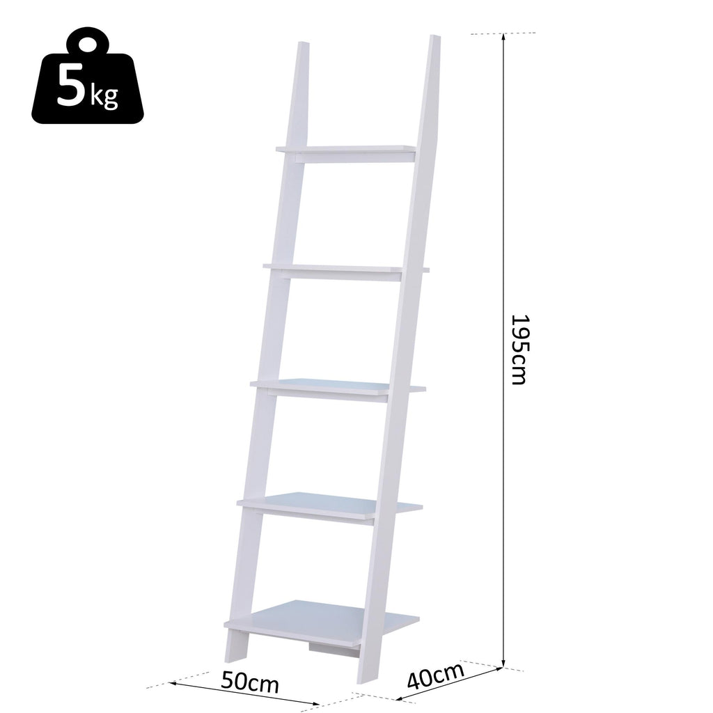 Bibliothèque 5 Étagères Ouvertes Design Moderne en Bois Blanc 50x40x195 cm