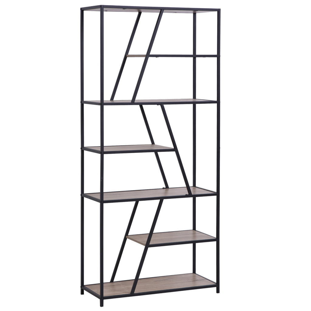Vous souhaitez trouver un lieu pour exposer vos collections ? L'étagère de bibliothèque est votre choix idéal, elle se caractérise par une couleur mélangée de noir et de bois et une ligne au design asymétrique, élégante et moderne, elle s'intègre parfaitement au décor de votre chambre, bureau ou bureau. Avec 9 étagères ouvertes trapézoïdales, il offre suffisamment d'espace pour trier les articles, rend votre maison bien rangée. Construit en panneaux de particules, cadre en métal, durable. Avec un design anti-renversement, très sûr.