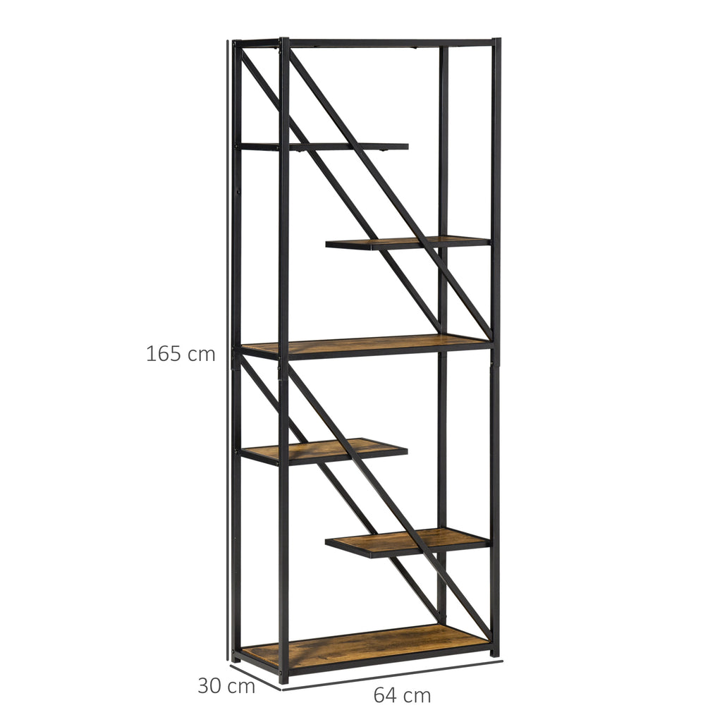 Bibliothèque murale 6 étagères 64x30x165 cm en aggloméré et métal marron et noir
