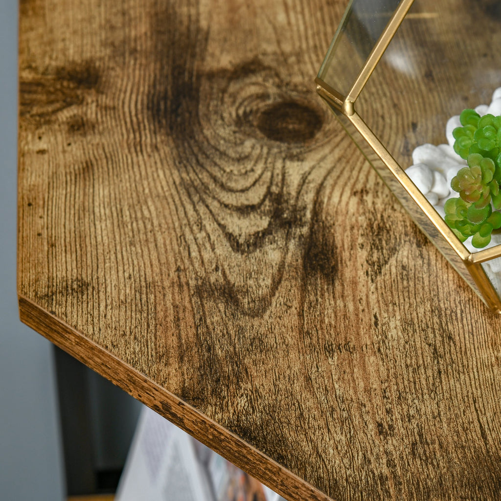- Étagères en forme de pentagone construites avec des panneaux de particules