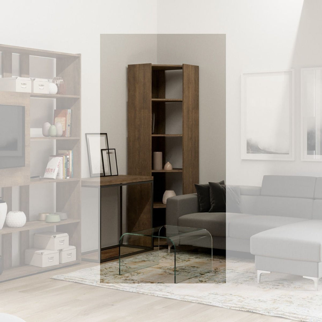 Libreria Angolare Moderna 5 Ripiani 60,3x60,3x205 cm in nobilitato Noce