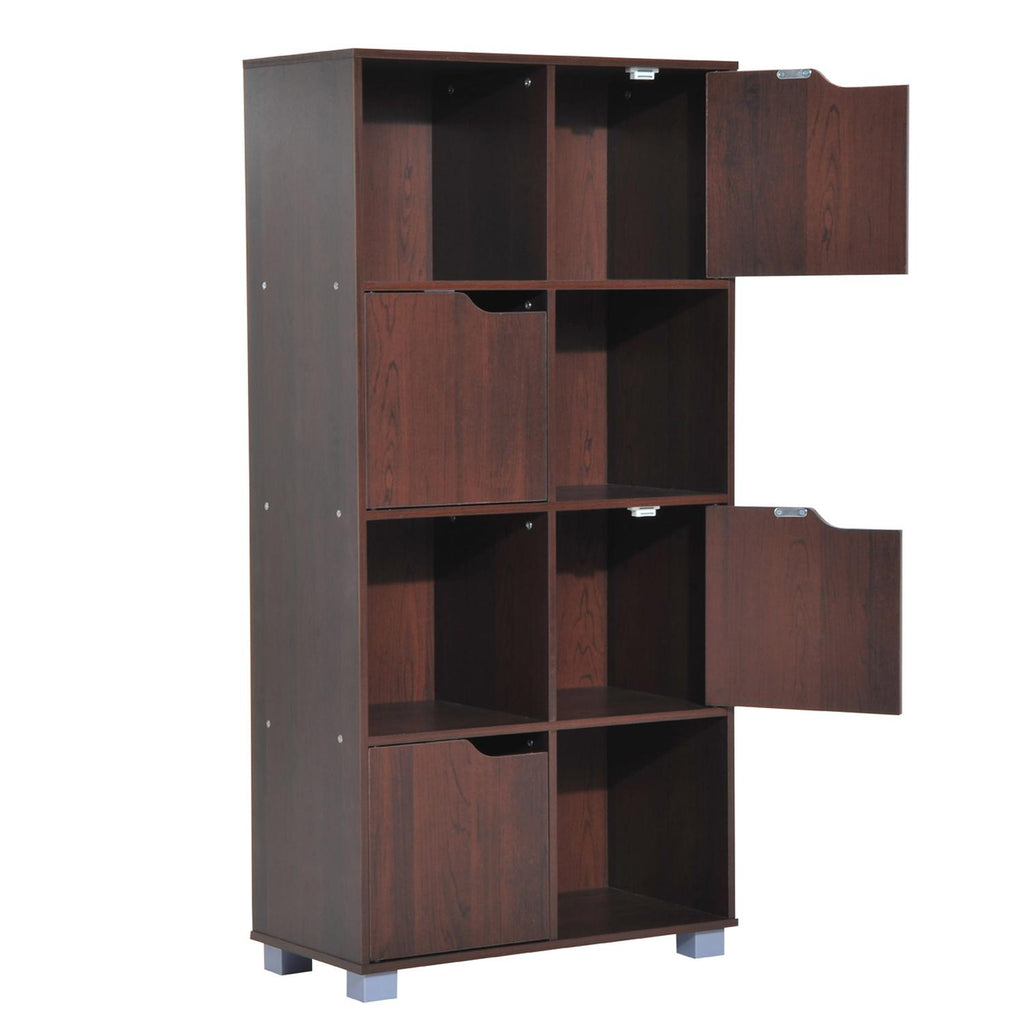 Bibliothèque design moderne 8 compartiments avec 4 portes en bois marron foncé 60x30x122 cm