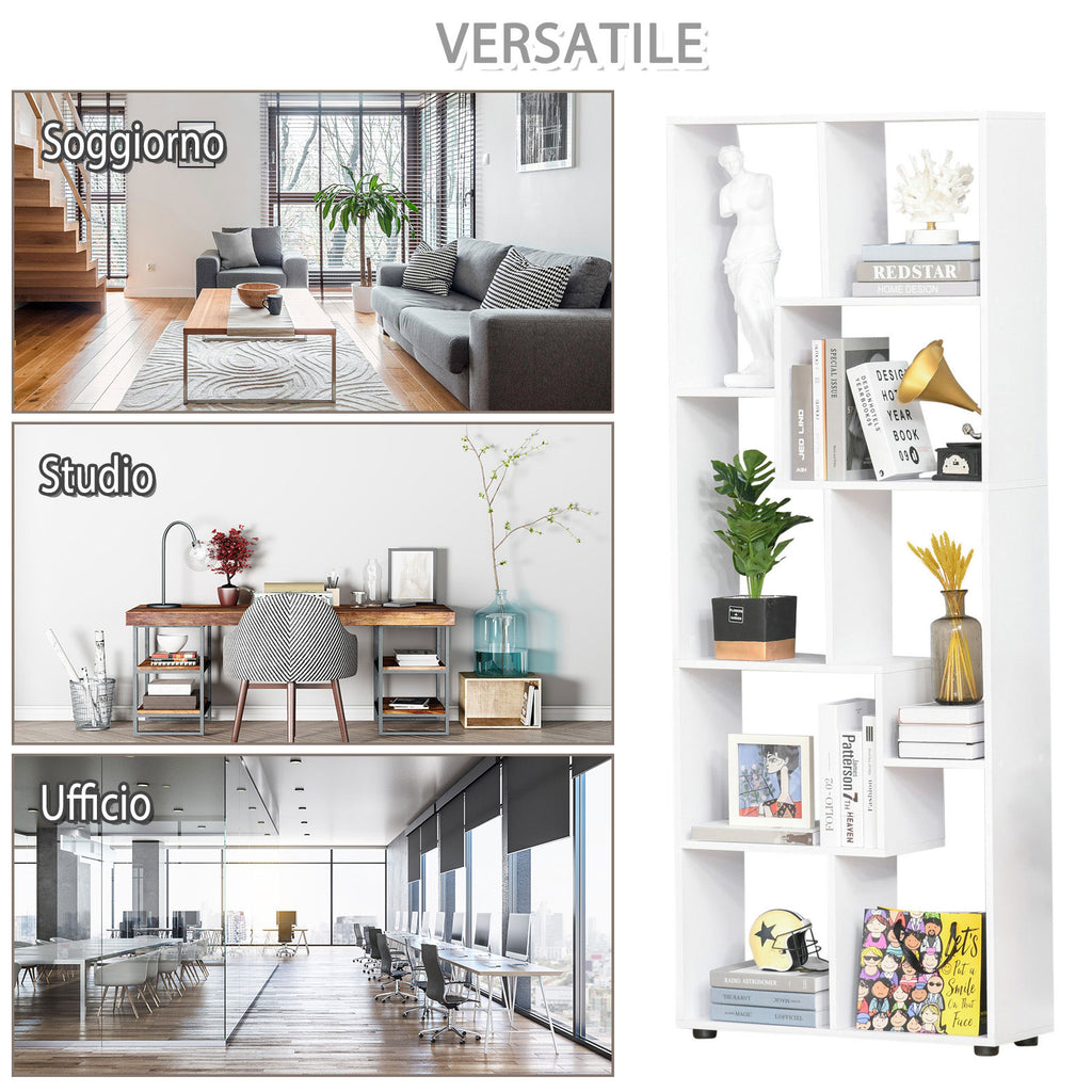 Bibliothèque Design 8 Étagères 70x24x178 cm en Bois Aggloméré Blanc