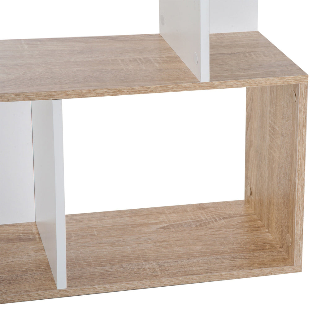Bibliothèque Design Moderne 4 étagères Bois Naturel et Blanc 60x24x148 cm
