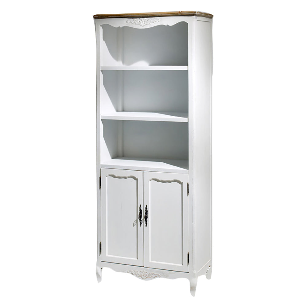 Bibliothèque Country en Bois Blanc 3 Compartiments 2 Portes 75x38x185cm