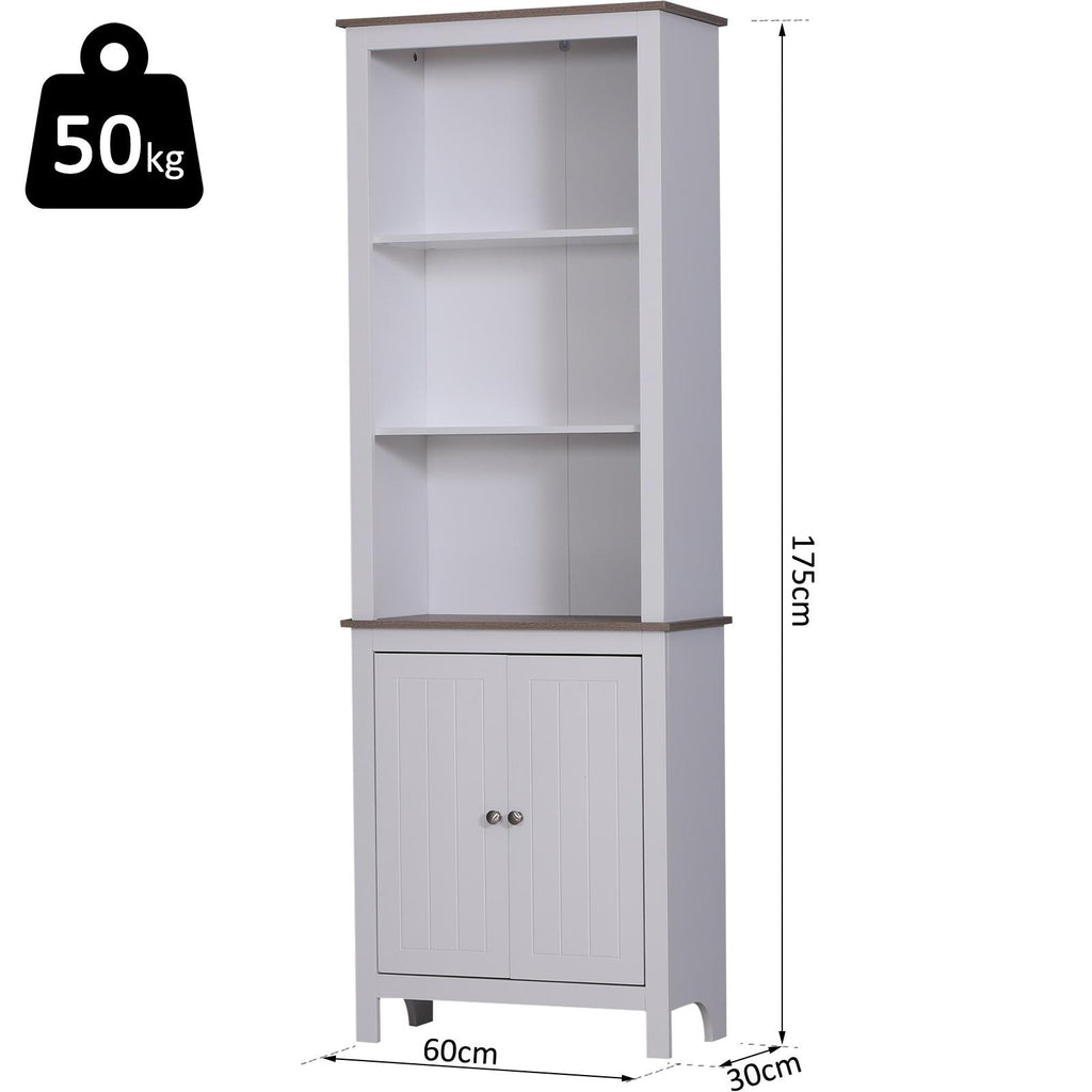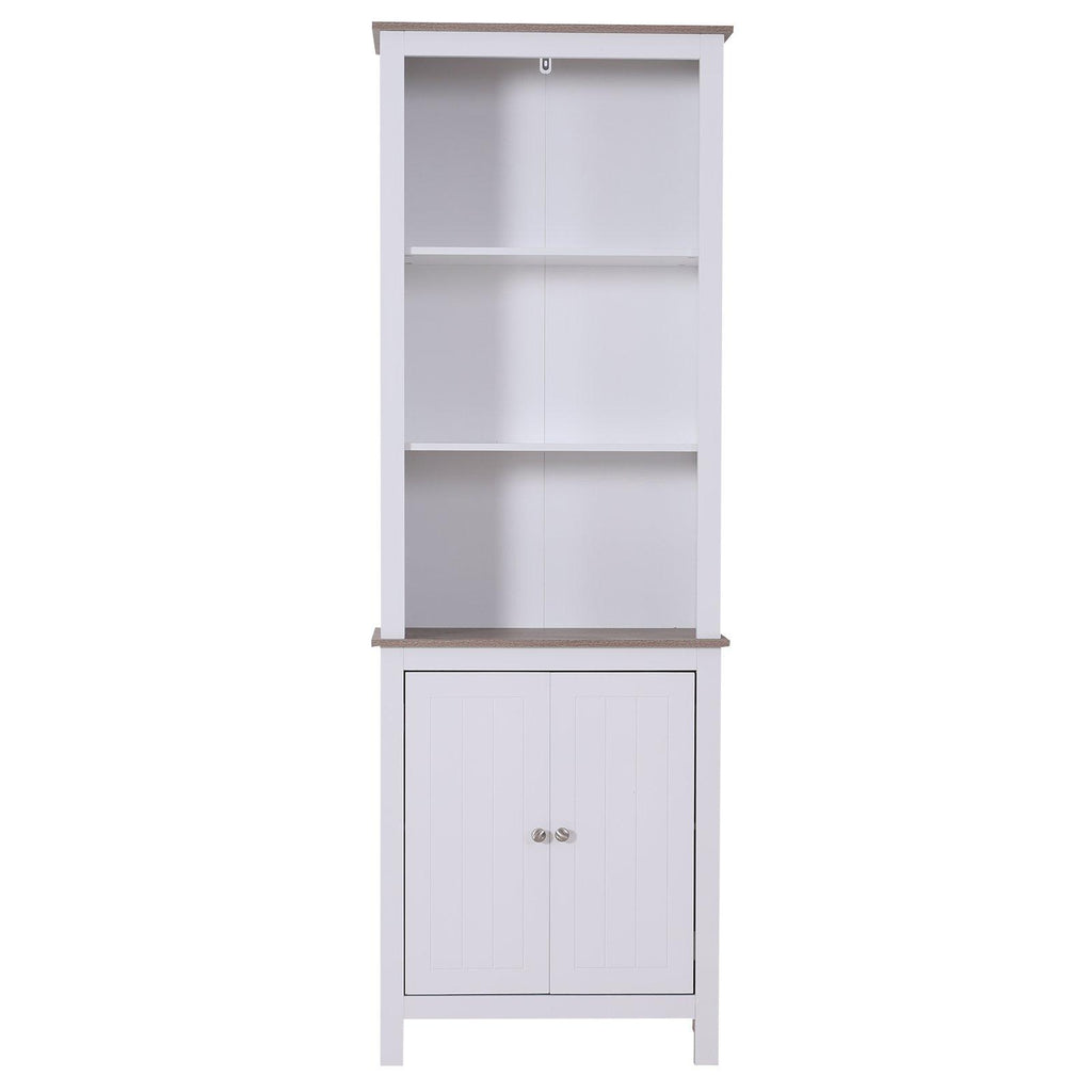 Bibliothèque en bois avec 3 étagères et portes blanches 60x30x175 cm