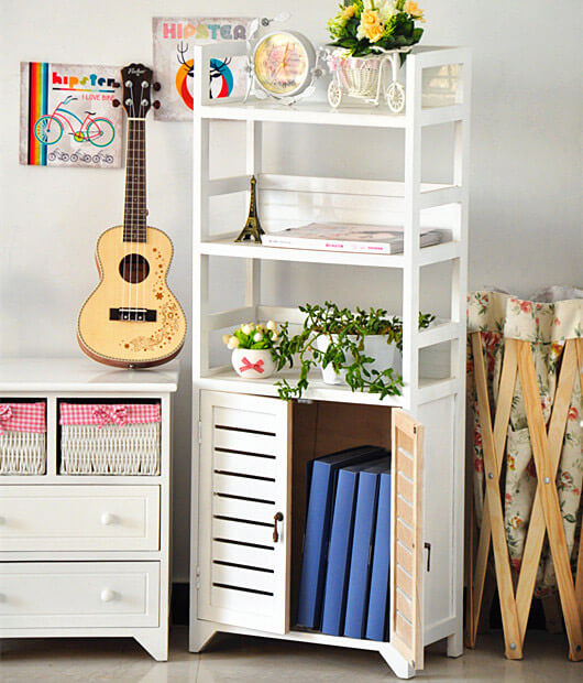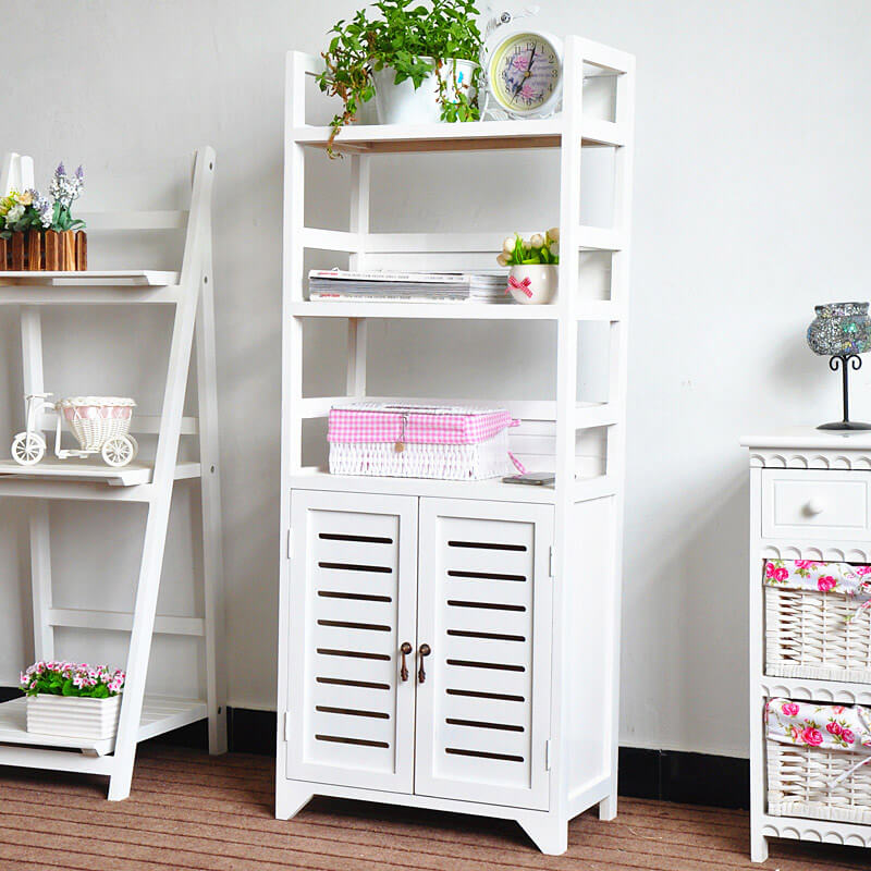 Bibliothèque Mobile 3 Etagères 2 Portes 45x25x118 cm en Bois Massif Fumer Antibes Blanc