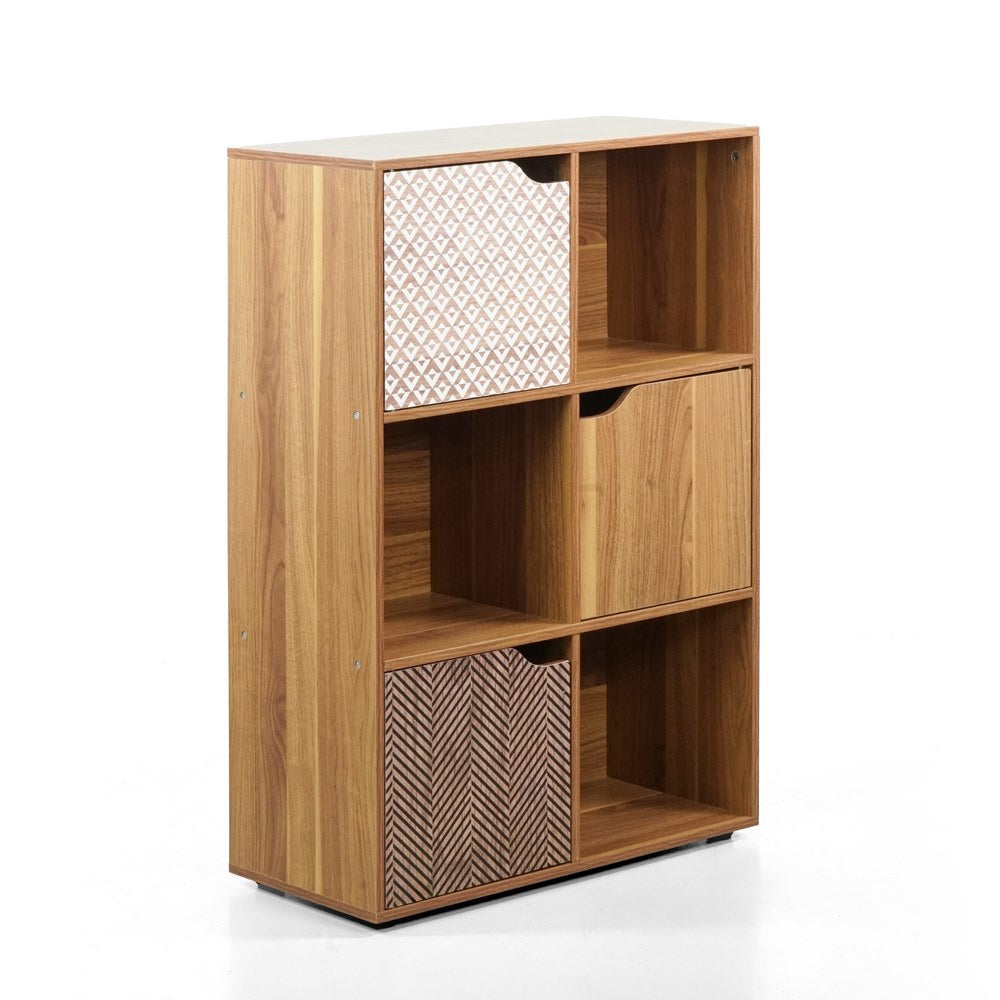 - Meuble bibliothèque 6 cubes avec portes décorées Dimension (LxPxH) : 59,6x29x90,5 cm