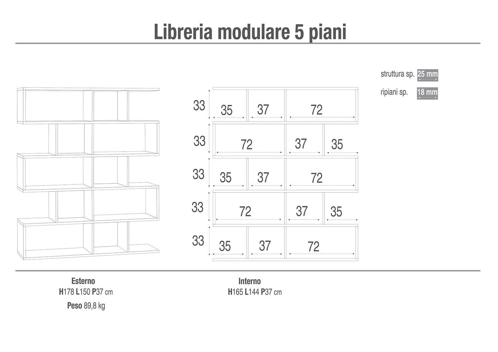 Libreria Modulare 5 Ripiani 150x180x38 cm Cemento
