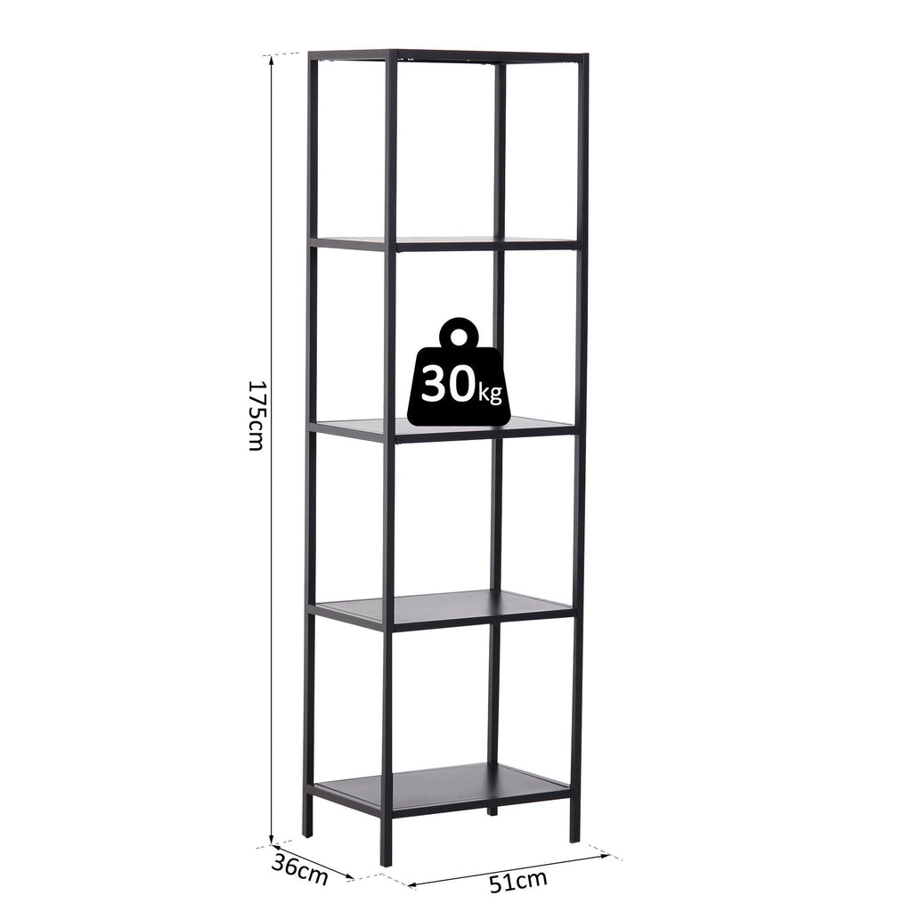 Bibliothèque étagère 5 étagères en métal noir 51x36x175 cm