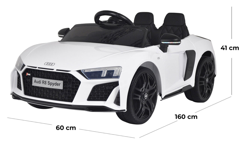 Véhicule électrique porteur pour enfants 12V sous licence Audi R8 Spyder Blanc