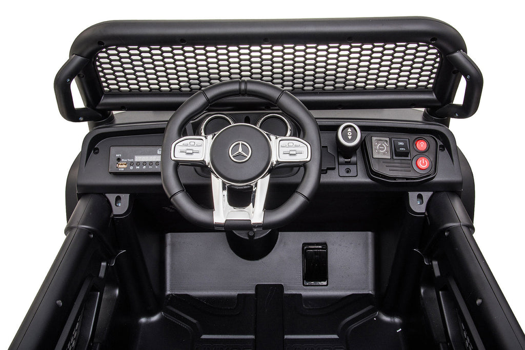 Le porte apribili e il telecomando permettono di guidare comodamente il veicolo, mentre le sospensioni, i sedili in pelle e la ruote in gomma EVA assicurano un viaggio confortevole su ogni terreno. Le luci a led e i suoni predefiniti creano un'esperienza realistica.