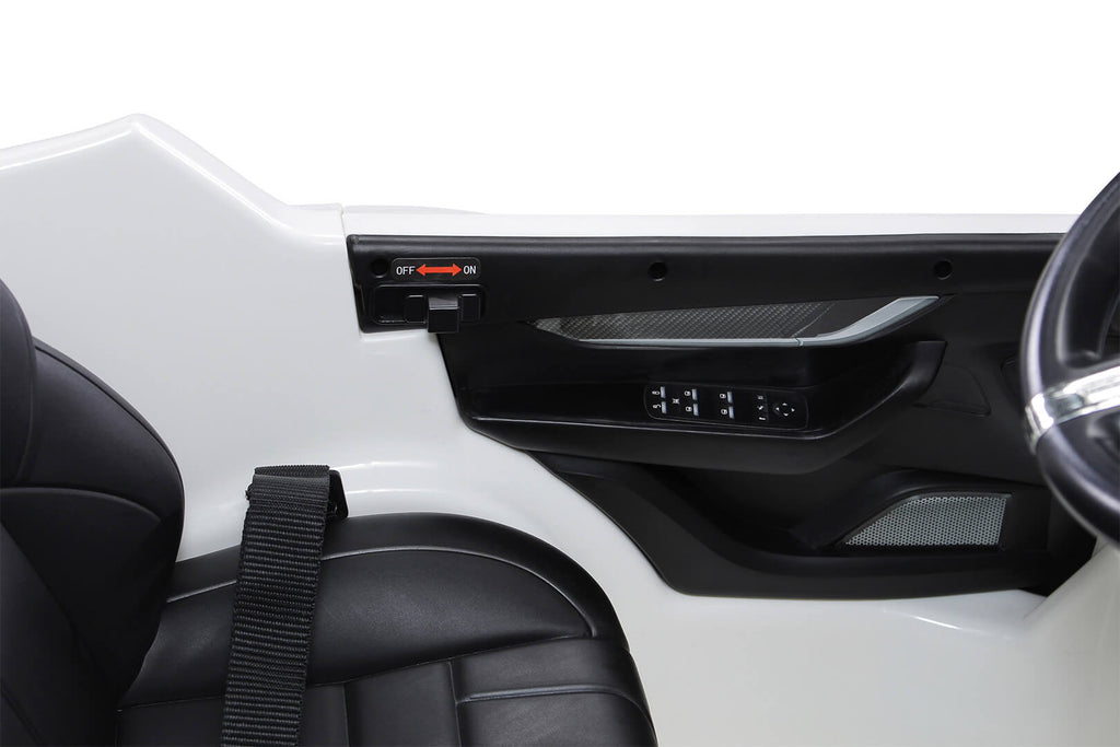 Contrairement au modèle précédent, les portes de la voiture électrique pour enfants Maserati Levante peuvent être ouvertes sans effort par simple pression d'un bouton.