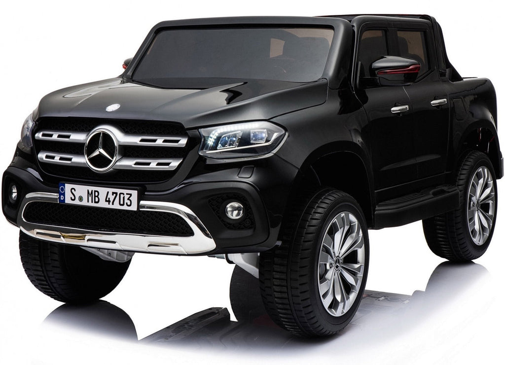Voiture pick-up électrique Mercedes Classe X entièrement optionnelle. Voiture de très haute qualité équipée d'une vraie suspension. Sécurité maximale puisqu'elle est équipée d'une télécommande pour le contrôle parental par les parents, cette voiture électrique regorge d'options comme le lecteur MP3 avec haut-parleur stéréo, des lumières, une entrée USB et un écran MP4.