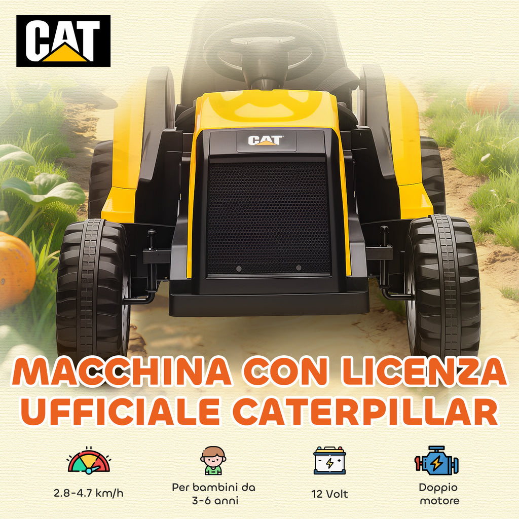 Trattore Elettrico per Bambini 3-6 Anni Marchio Ufficiale CAT 12V Guida Manuale e con Telecomando Giallo