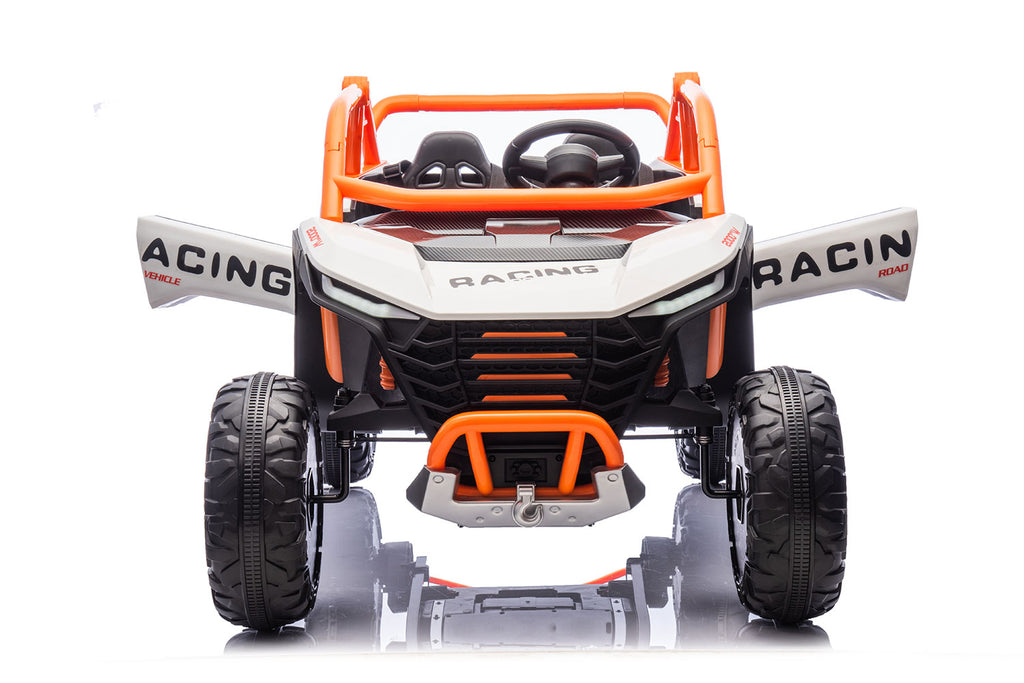 Regala ai tuoi bambini un'avventura emozionante con la macchina elettrica UTV per bambini! Questa robusta e divertente vettura è dotata di batteria da 24V - 7 Ah, garantendo prestazioni durature e divertimento senza limiti. Con due sedili reali, luci a LED, suoni e musiche predefinite, e un dashboard multimediale, i piccoli piloti vivranno esperienze coinvolgenti e realistiche. Le ruote in EVA offrono una guida stabile e silenziosa, mentre l’acceleratore a pedale e il cambio avanti/indietro permettono un controllo semplice e sicuro. La doppia velocità permette di adattare l’esperienza di guida alle capacità dei bambini, rendendo ogni uscita un momento di puro divertimento. Con dimensioni di 143x63x75 cm e un peso di 29 kg, questa macchina elettrica UTV è perfetta per regalare ore di gioco sicuro e avventuroso ai tuoi piccoli esploratori!